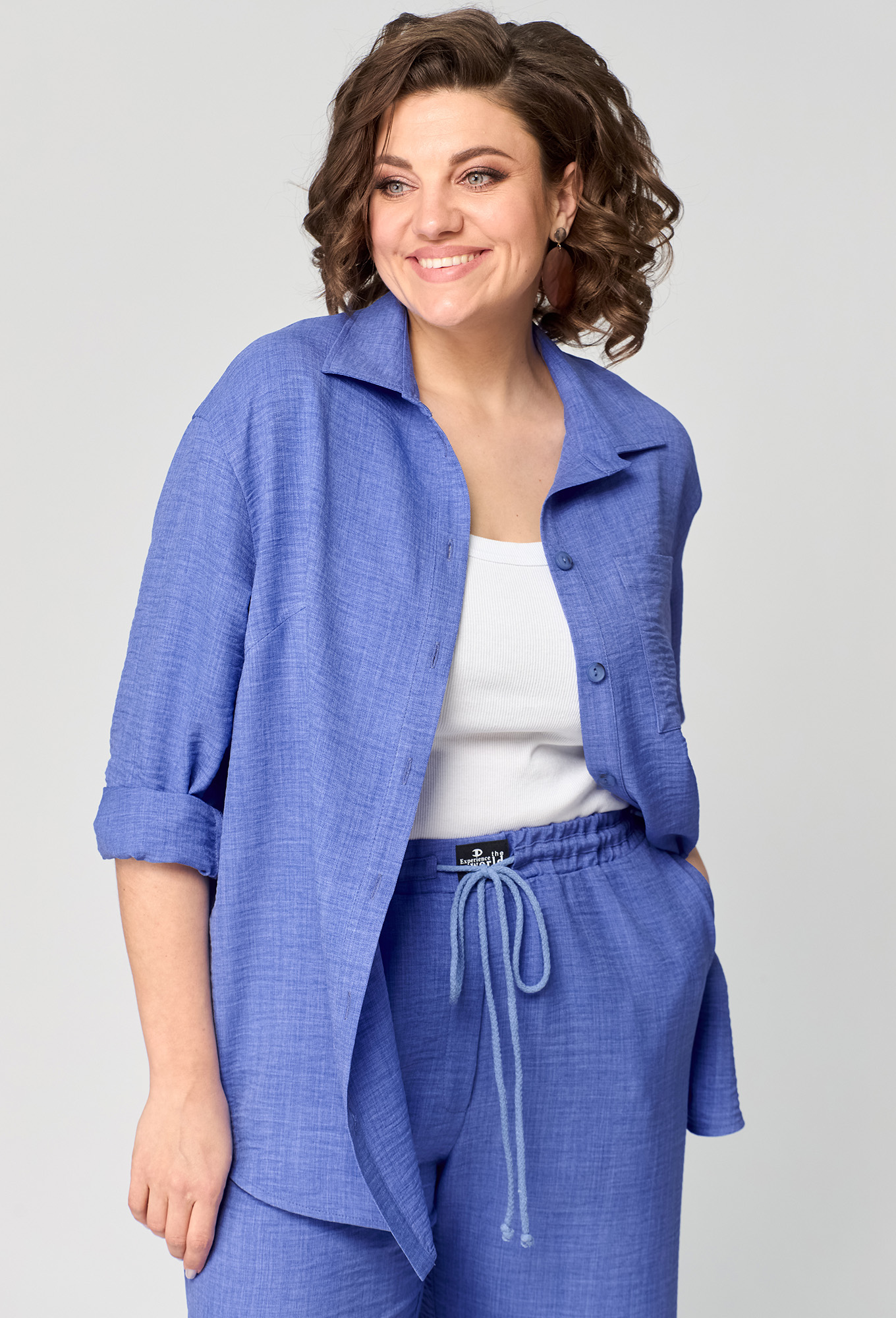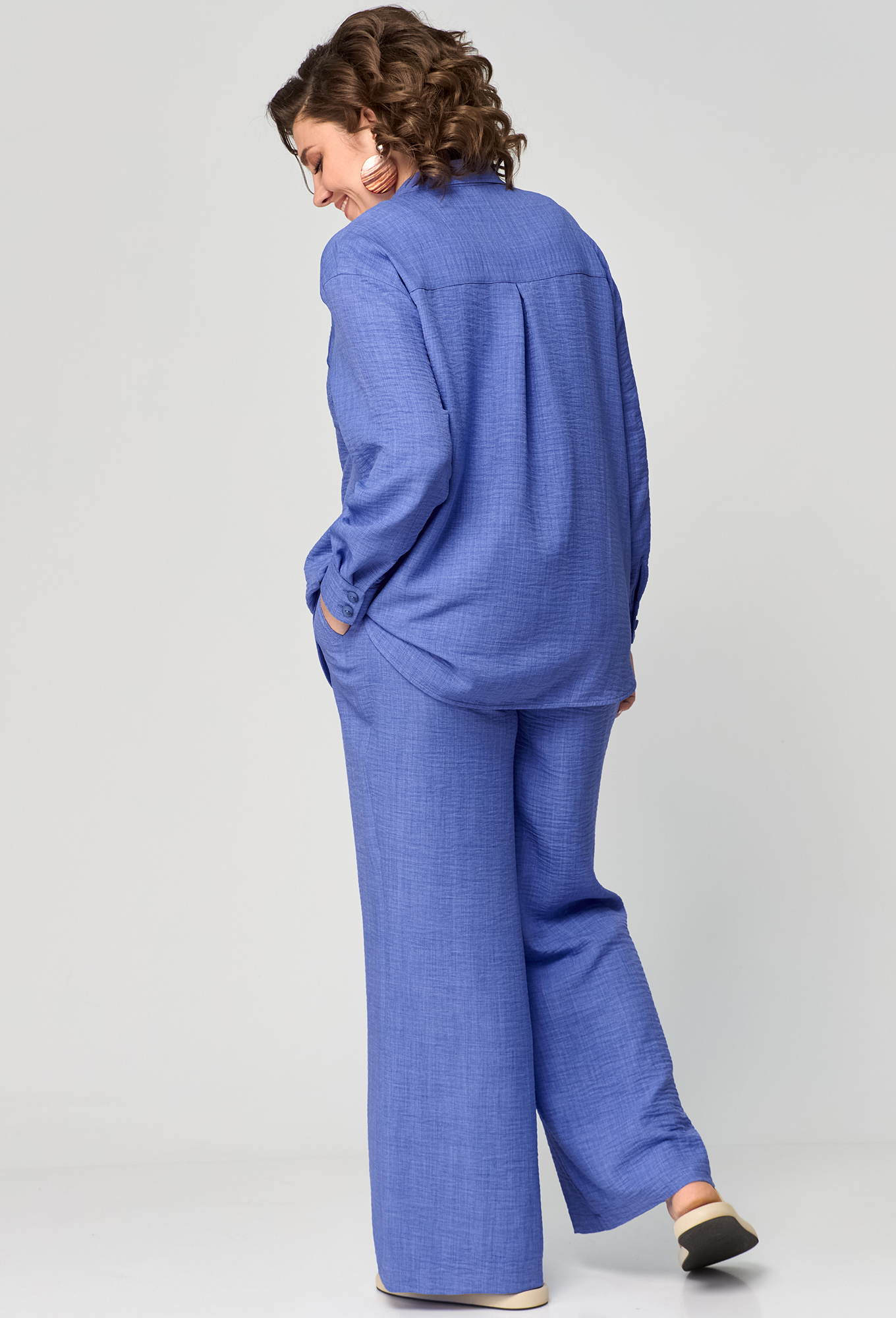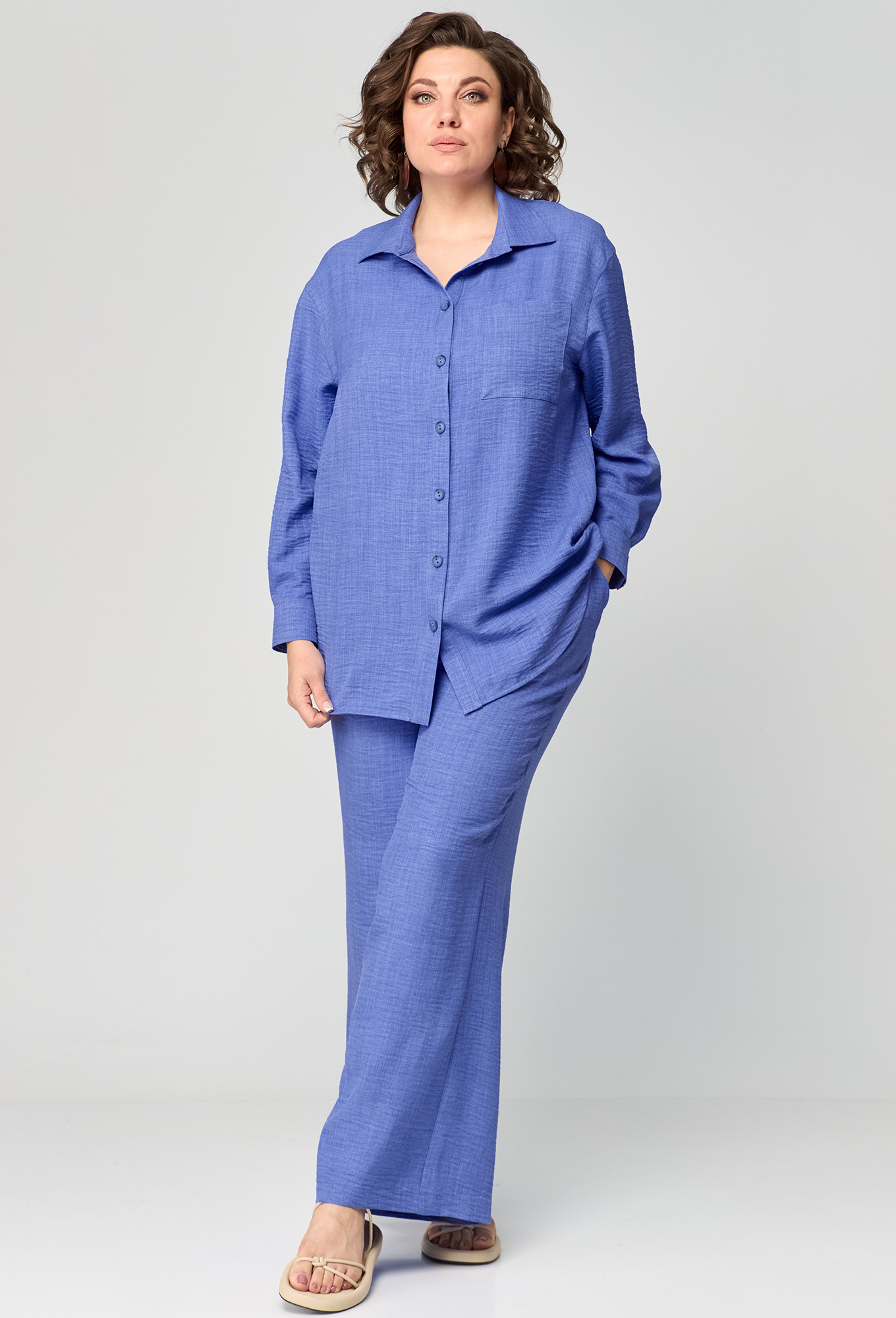 Модель: Анастасия Мак 1191 василек ..показатьi>Рост: 164 см (девушка на фото ростом 170см) Сезон: Весна-Лето Тип ткани: 100% ПЭКостюм состоящий из рубашки и брюк выполнен из однотонной ткани.