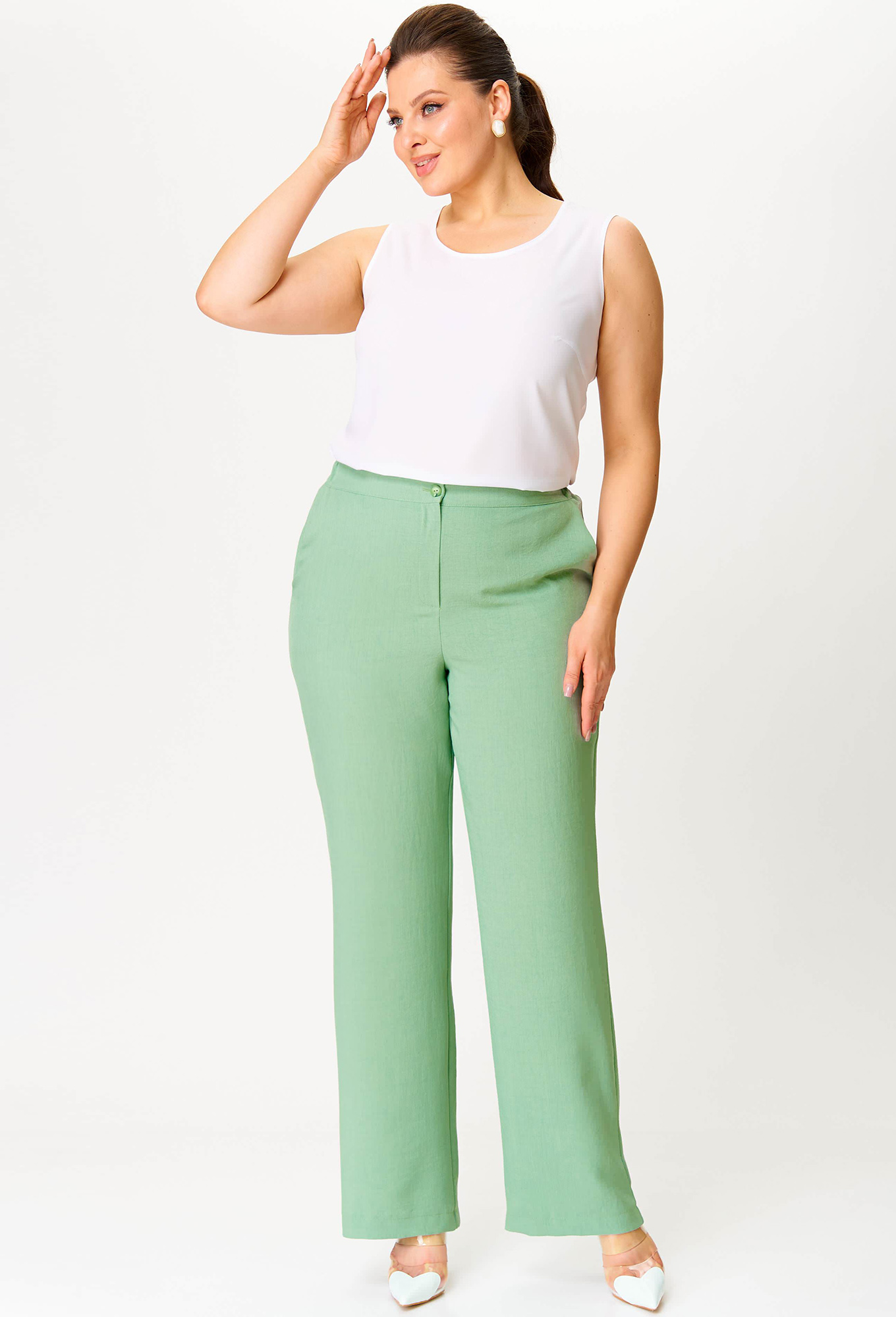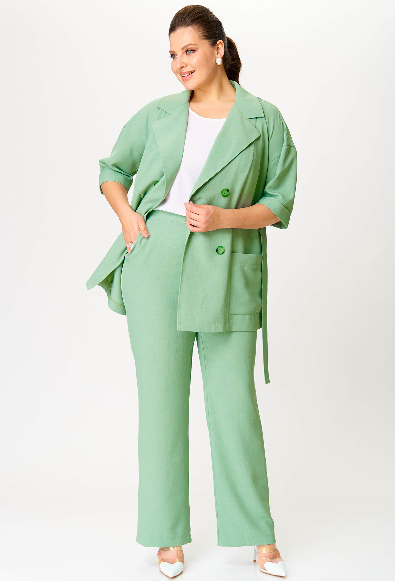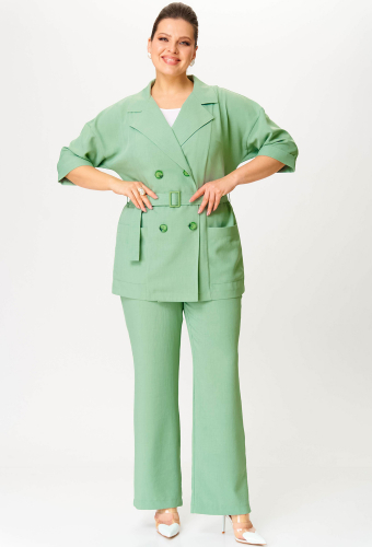 Модель: Анастасия Мак 1242 зелёный ..показатьi>Рост: 164 см (девушка на фото ростом 170см) Сезон: Весна-Лето Тип ткани: 100% ПолиэстерКостюм состоящий из жакета и брюк выполнен из однотонной ткани. _x000D_