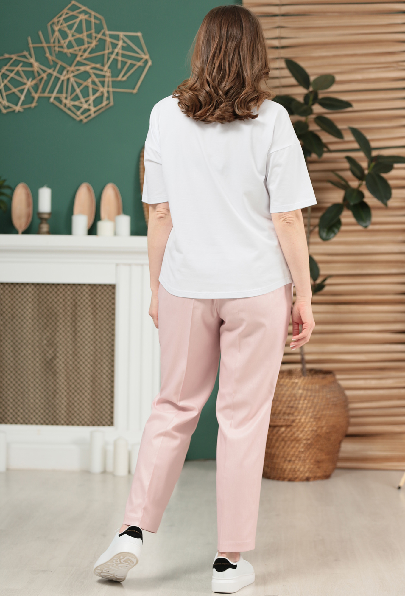 Модель: Анастасия Мак 792 пудра Р..показатьост: 164 см (девушка на фото ростом 170см) Сезон: весна-лето Тип ткани: Вискоза 65%, полиэстер 35%; полиэстер 100%.Жилет полуприлегающего силуэта на подкладке. Полочка с вертикальными рельефами и отрезными бочками. Спинка со средним швом. Брюки классические, длиной 7/8, со стрелками. В области бедер прилегающие, в колене свободные и слегка заужены к низу. По задним половинам обработаны талиевые вытачки. Брюки на притачном поясе с ластичной тесьмой в области боковых швов.ост: 164 см (девушка на фото ростом 170см)