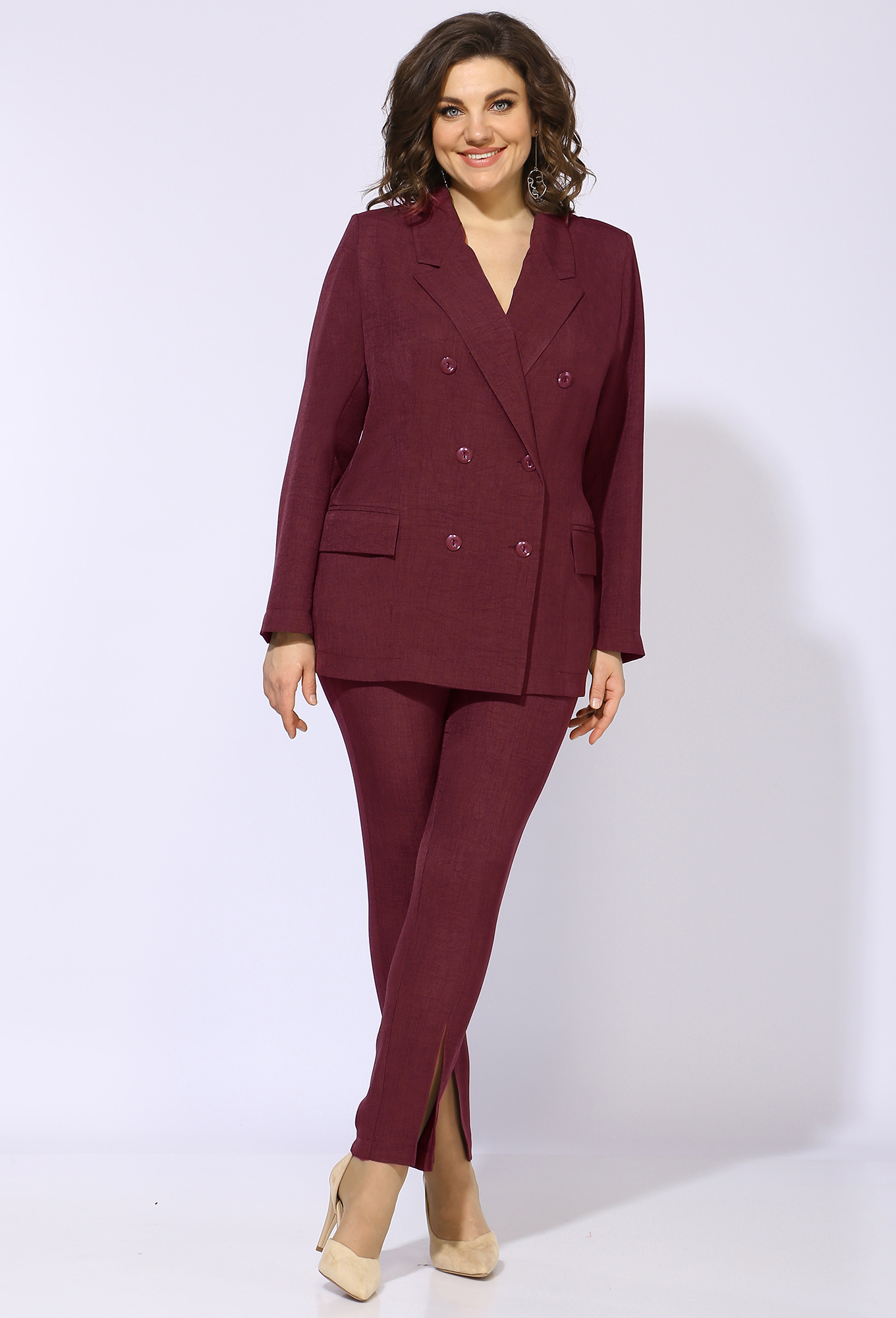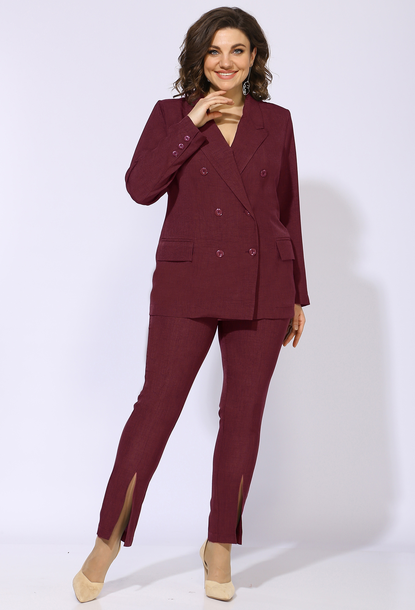 Модель: Анастасия Мак 902 бордо Р..показатьост: 170 см (девушка на фото ростом 170см) Сезон: Весна-Лето Тип ткани: 71% Вискоза, 24% ПЭ, 5% Спандекс.Костюм выполнен из однотонной ткани. Жакет прямого силуэта, без подклада. Перед жакета с вертикальными вытачками, двубортной застежкой на петли и пуговицы и прорезными карманами с клапанами. Жакет с отрезным бочком без бокового шва. Горловина V – образной формы, с отложными лацканами и воротником пиджачного типа. Спинка со средним швом. Рукав втачной, длинный, двухшовный, со шлицей.