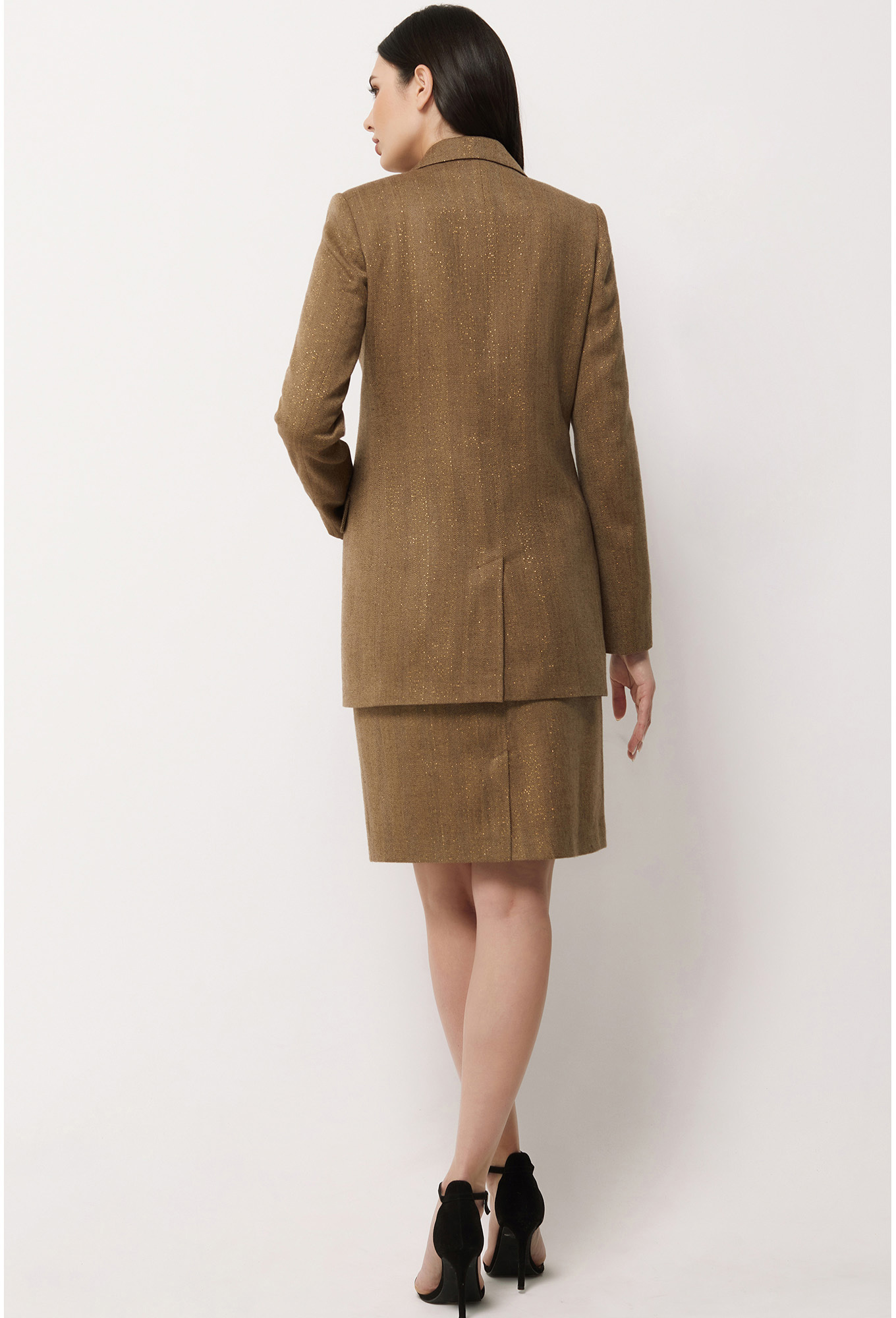 Модель: Базалини 4254/4249 коричневый..показать Рост: 170 см (девушка на фото 170см) Сезон: Осень-Зима Тип ткани: 64% Полиэстер, 32% Вискоза, 2% Эластан, 2% Метал. нитьОднобортный жакет прямого силуэта с застежкой на петлю и пуговицу. Перед с двумя карманами с рамками и клапанами и одним карманом-обманкой с рамками и клапаном. Средний шов спинки заканчивается шлицей. Рукава втачные двушовные. Воротник отложной с лацканами. На подкладке.