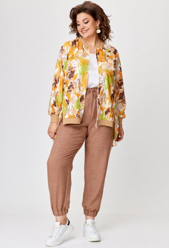 Модель: БЕЛЭЛЬСТИЛЬ 203/586 зеленый черно-..показатьбелые цветы Рост: 164 см (девушка на фото ростом 164см) Сезон: Весна-Лето Тип ткани: хлопок 97%, спандекс 3%Комплект: жакет и брюки. Жакет женский укороченный, полуприлегающего силуэта с центральной бортовой застежкой на пуговицы до линии перегиба лацкана. Спереди рельефные швы от плечевого шва,отрезной бочок и накладной карман. Спинка со средним швом и рельефами от плечевого шва. Рукав втачной, двухшовный, 3/4. Воротник пиджачного типа. Жакет на х/б подкладке. Фурнитура может отличаться от студийного фото.