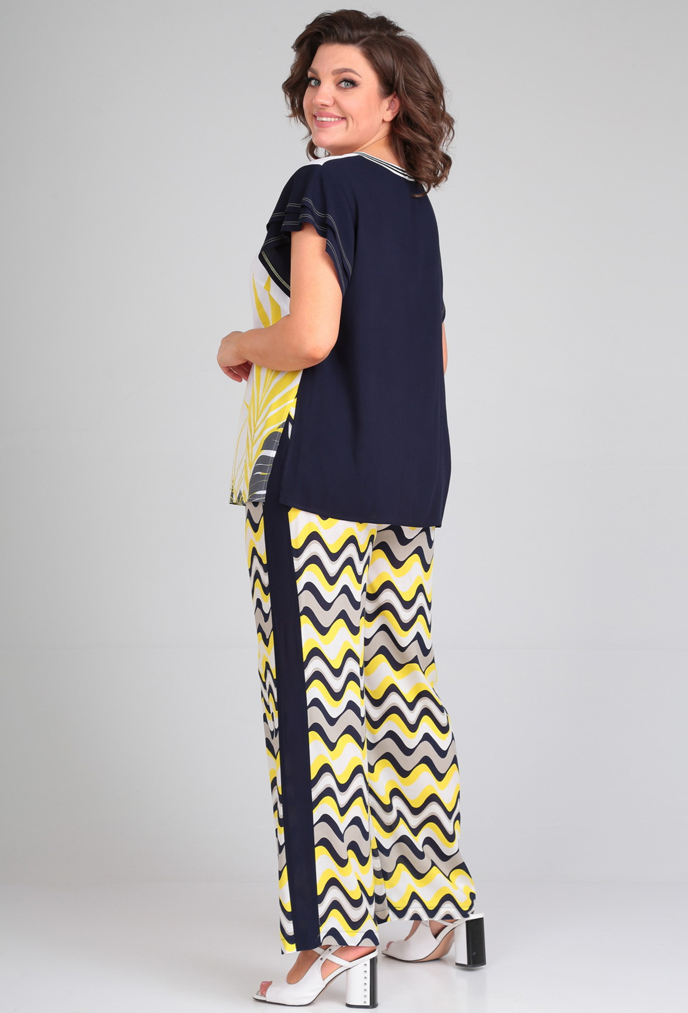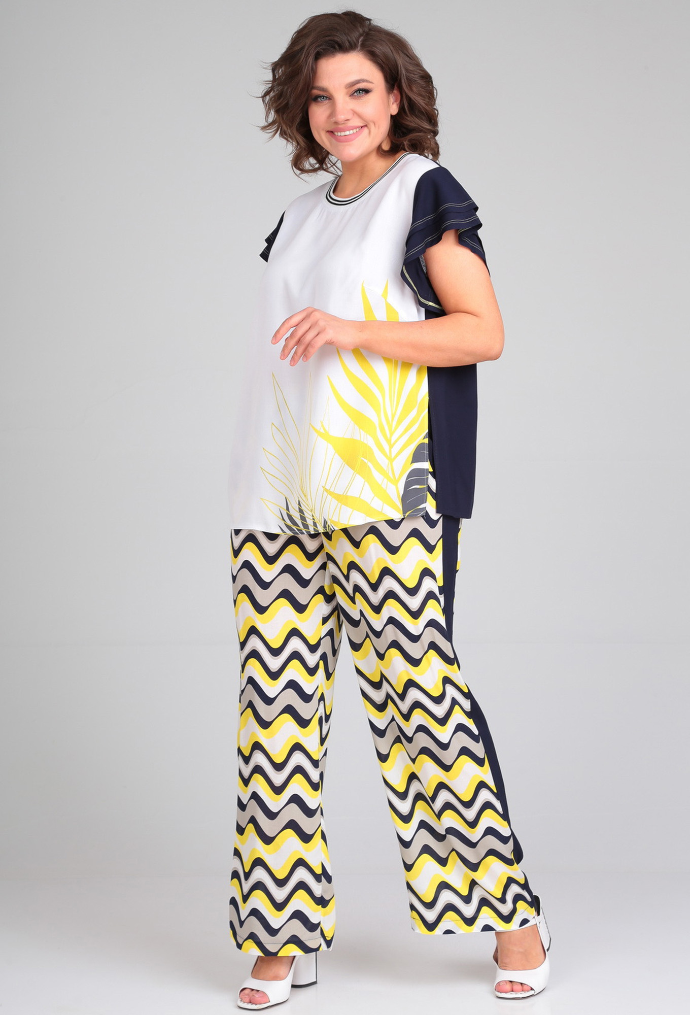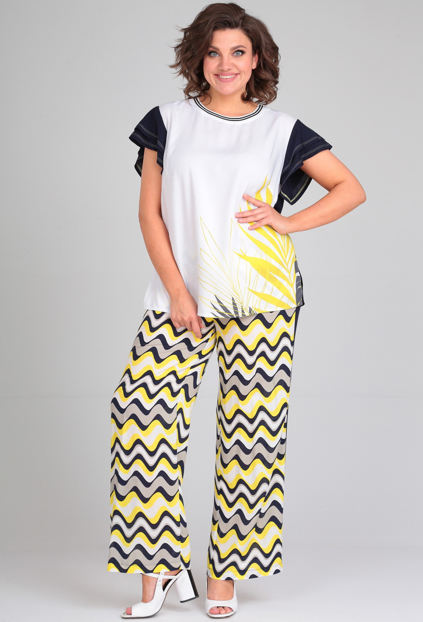 Модель: Диамант 1873 жёлто-синий ..показатьРост: 164 см (рост модели на фото 170см) Сезон: Весна-Лето Тип ткани: 50 % хлопок 50 % вискозаКомплект брючный (из трёх видов ткани). Блуза прямого силуэта. Перед из отделочной ткани с печатью. Спинка и рукав из основной ткани. По боковым швам обработаны разрезы. Горловина округлой формы из трикотажного довяза. Рукав короткий двойной в виде крылышек. Брюки широкие прямые из отделочной ткани с лампасами из основной ткани. Пояс цельнокроенный на резинке.
