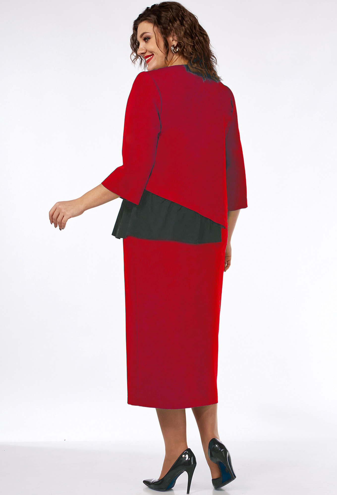 Модель: Джуримекс 3046 красный Ро..показатьст: 164 см (девушка на фото ростом 170см) Сезон: Круглогодичный Тип ткани: Вискоза — 62% полиэстер — 35% спандекс — 3%Костюм женский, юбочный, изготовлен из костюмно-плательной ткани. Блуза прямого силуэта. Горловина круглой формы. Низ ассиметричный с декоративной деталью из отделочной ткани. Спинка цельнокроеная. Рукава втачные, длиной 3/4 . Декор- съемный бант. Юбка зауженная к низу, на подкладке. Верх юбки на обтачке, застежка в боковом шве на тесьму-молнию. По переду средний шов с разрезом внизу._x000D_