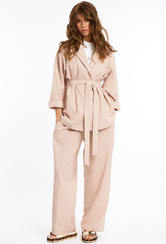 Жакет со съемным поясом, который завязывается на талии, длина до середины бёдра.Шорты женские, прямого силуэта, умеренного объема.