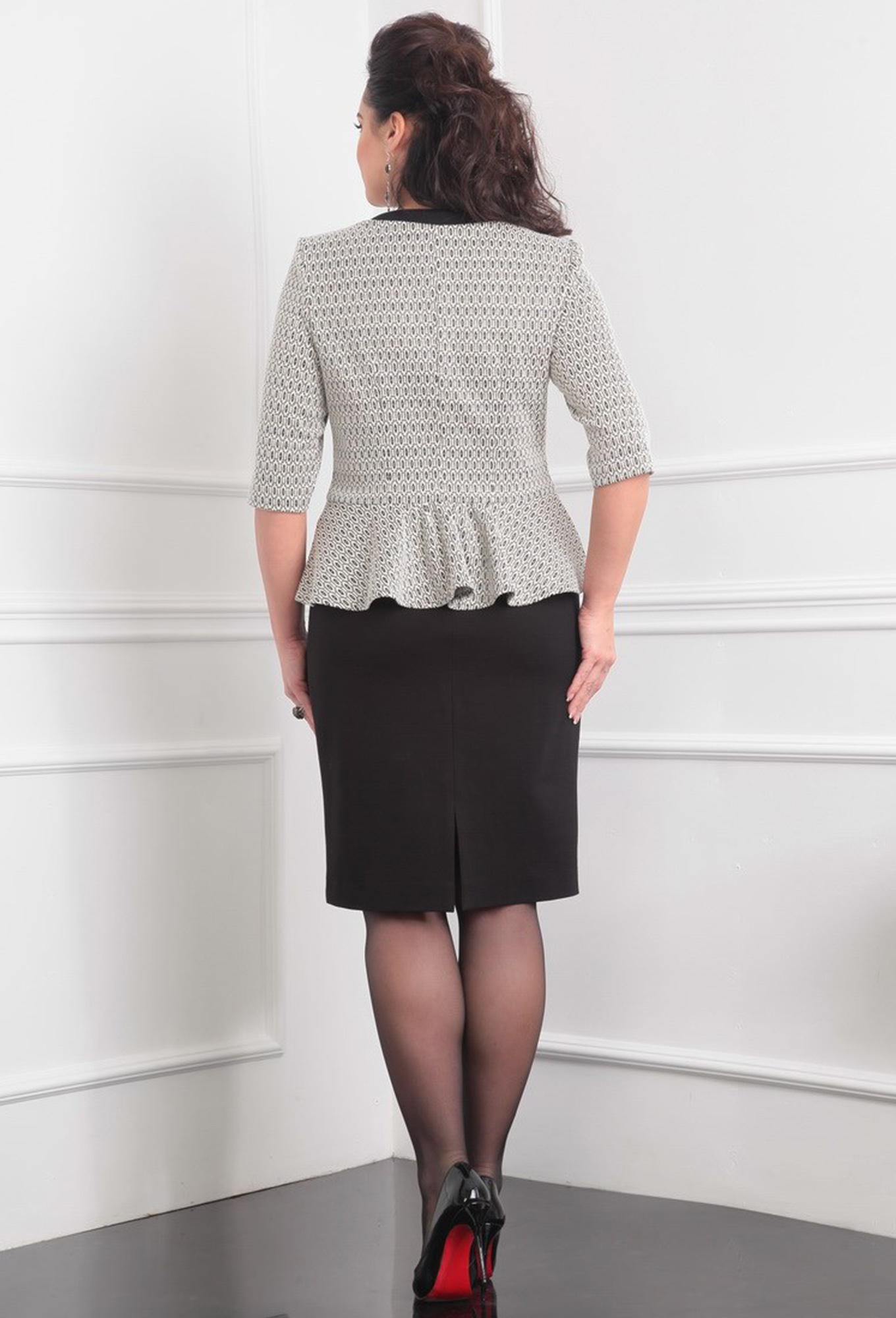 Модель: Леди Лайн 412 Рост: 164 с..показатьм (рост модели на фото 170см) Сезон: круглогодичный Тип ткани: юбка- вискоза 67%, нейлон 29%, спандекс 2% жакет- ПЭ 45%, хлопок 43%, люрекс 10%, спандекс 2%Комплект женский 2х предметный, состоит из жакета и юбки Жакет прилегающего силуэта из приятного плотного трикотажа с добавлением люрексовой нити.По линии талии жакета пришита баска по спинке по центру на баске сборка. По краю горлоины пришита планка. Застёжка на прорезные петли и пуговицы. Рукав 3/4. Юбка облегающего силуэта, к низу типа "карандаш", в рерху юбка на на обтачке, по задней половине юбки застёжка на потайную тесьму-молнию, по низу юбки открытая шлица. Юбка на трикотажной подкладке.