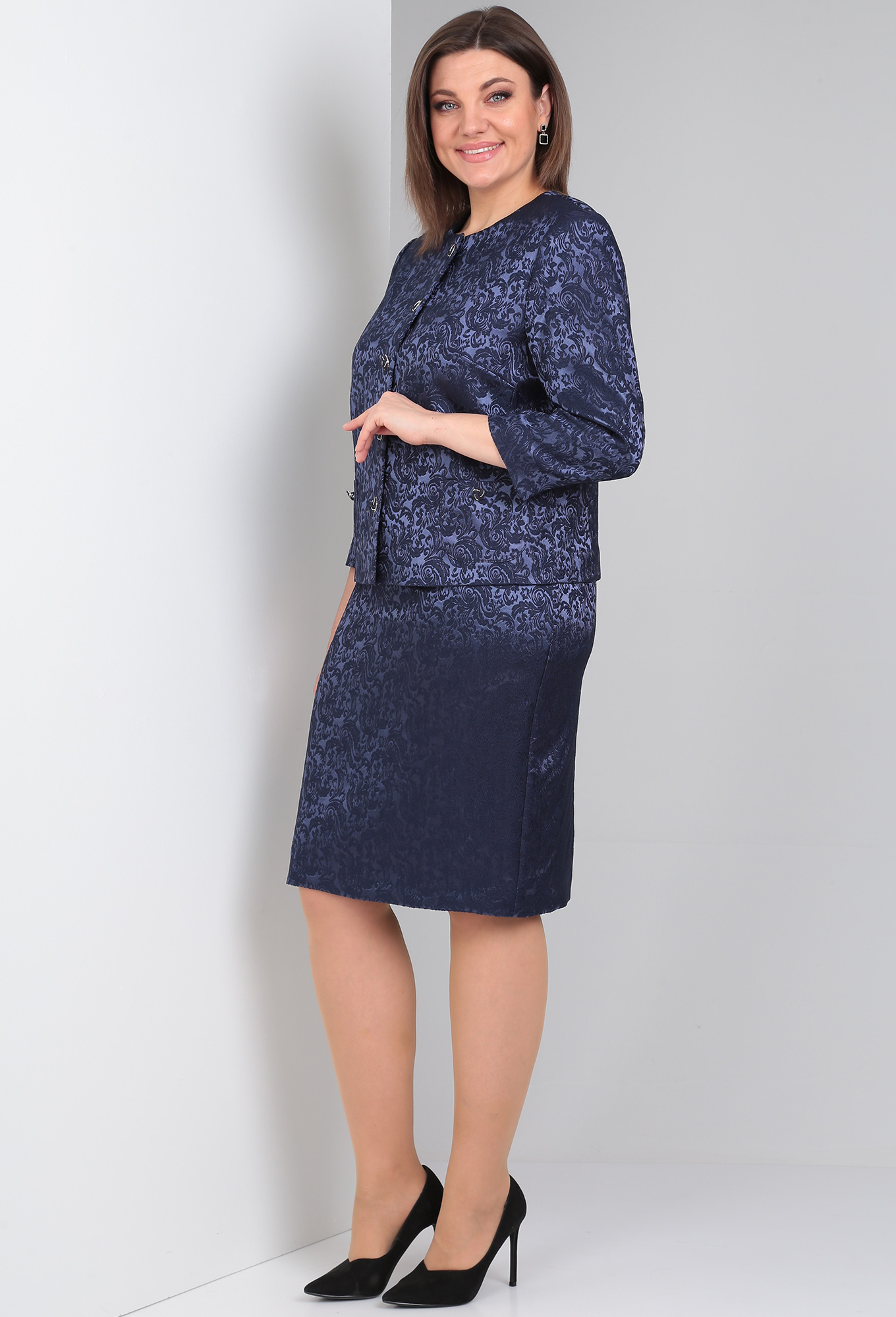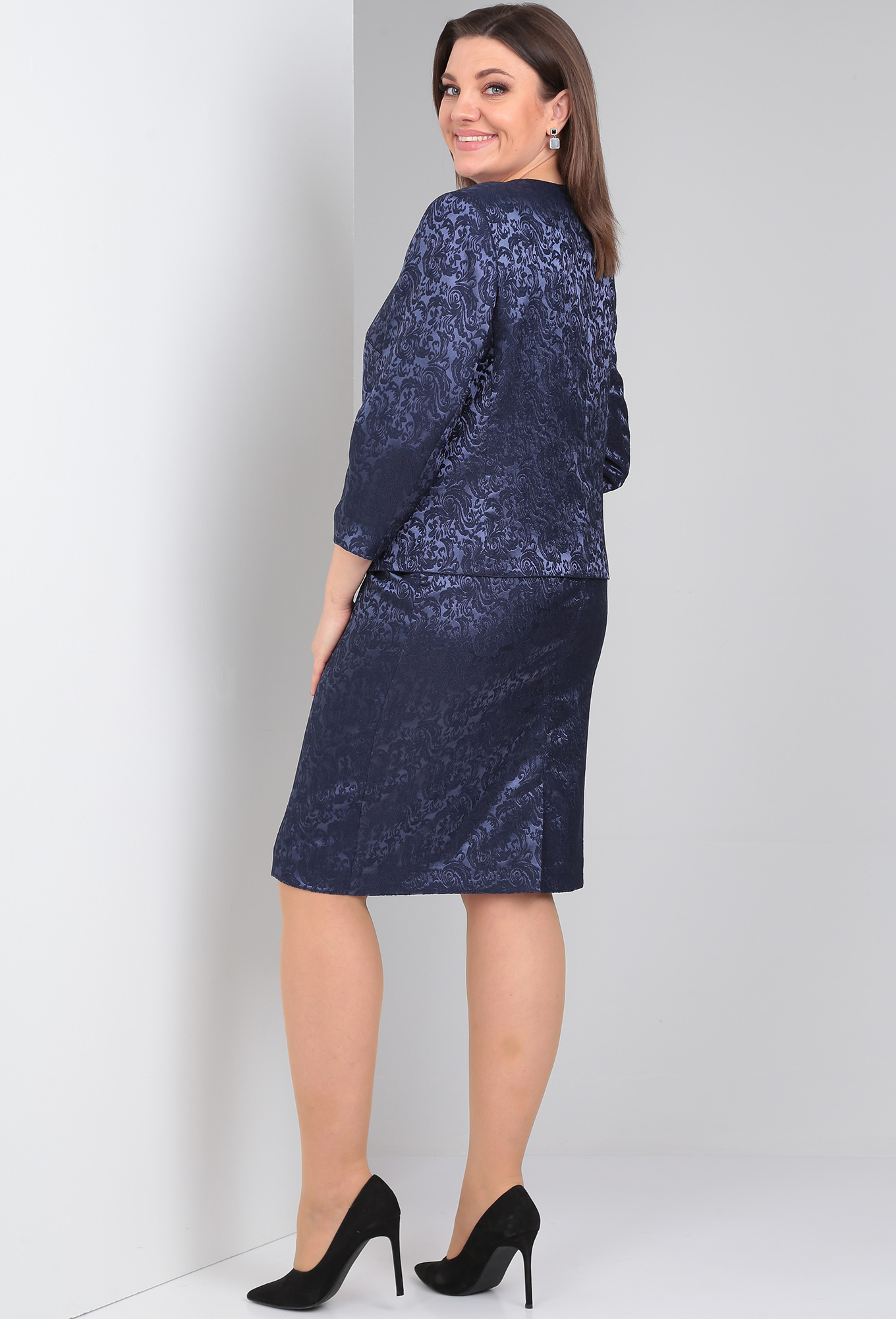 Модель: Леди Лайн 525 т.синий Рос..показатьт: 164 см (рост модели на фото 170см) Сезон: Круглогодичный Тип ткани: 49% полиэфир, 48% вискоза, 3% спандексКостюм 2х предметный. Состоит из жакета и юбки. _x000D_