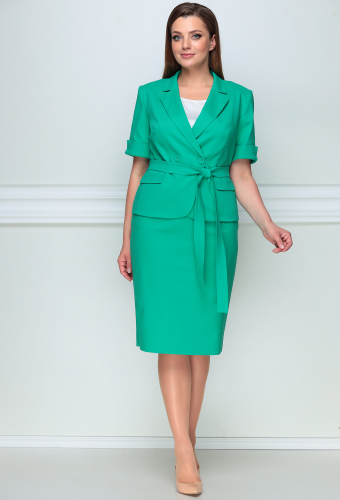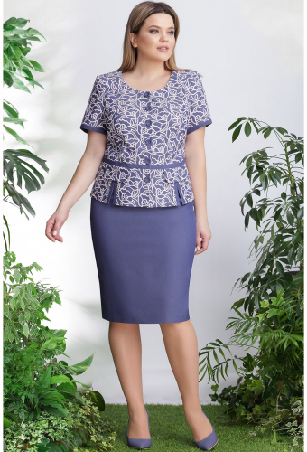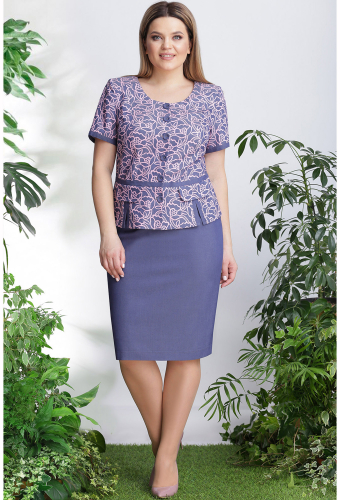 Модель: Лената 21999 розовый узор ..показать>Рост: 164-170 см (рост модели на фото 170см) Сезон: весна-лето Тип ткани: вискоза 70%, полиэстер 27%, спандекс 3%Комплект женский, состоящий из блузы и жакета. Жакет полуприлегающего силуэта, застежка центральная бортовая на петлю-пуговицу, вырез горловины круглый. Талию подчеркивает подрез с планкой и разрезами по переду с клапаном. Рукав втачной, короткий с планкой по низу. Юбка на подкладке, длиной чуть ниже колена, на притачном поясе с резинкой. Застежка на потайную тесьму-молнию в среднем шве заднего полотнища, имеется разрез.