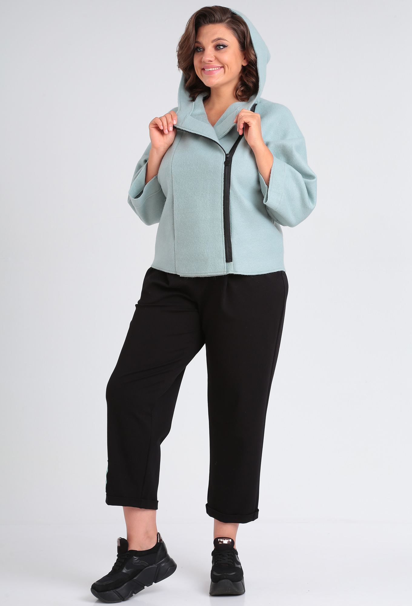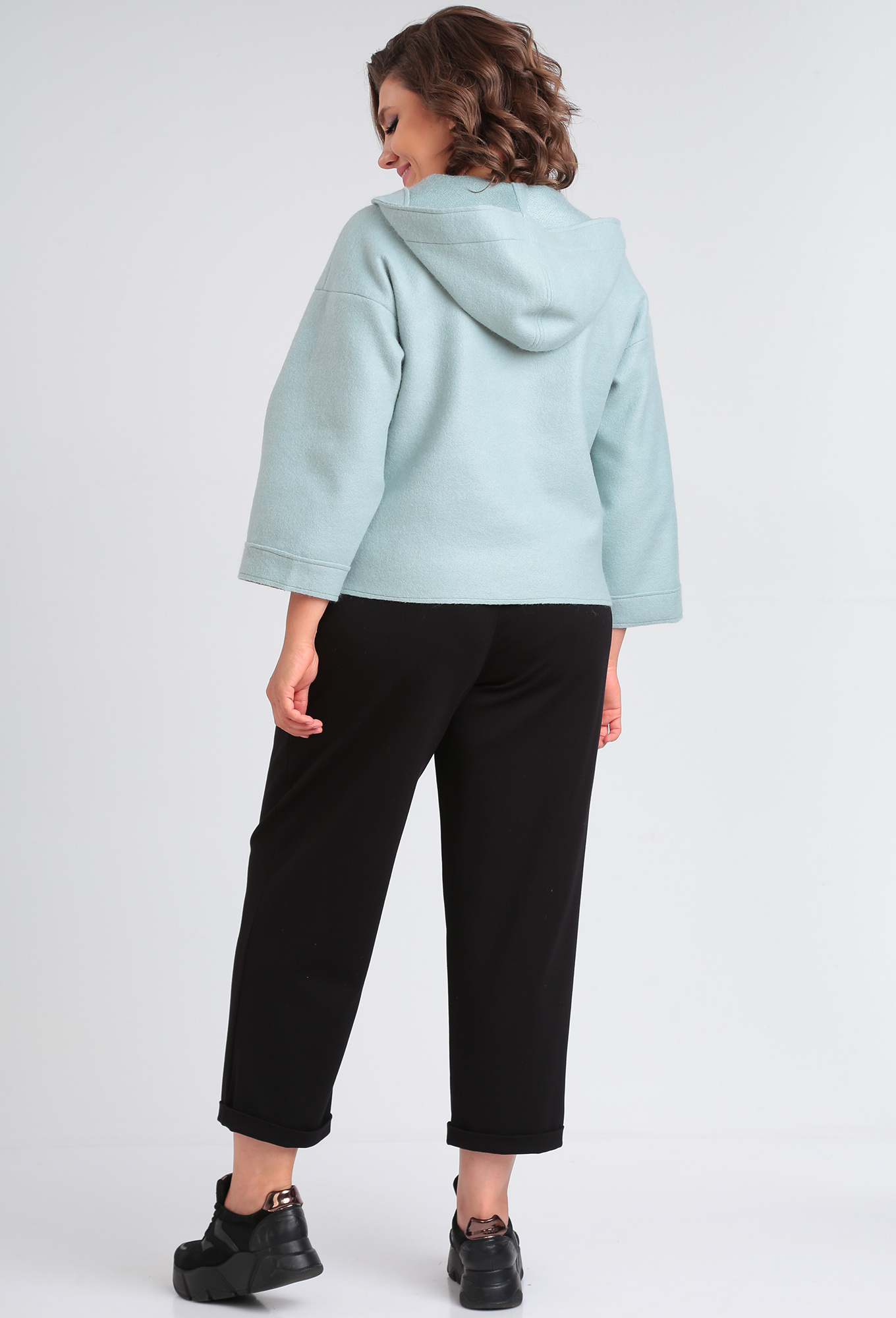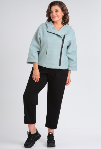 Модель: Мишель Шик 1357 мята Рост..показать: 164 см (девушка на фото ростом 170см) Сезон: Осень-Зима Тип ткани: Жакет — 55% шерсть, 45% полиэстерБрюки — 62% вискоза, 33% ПА, 5% спандекс;Повседневный брючный костюм из двух предметов — жакет и брюки. Жакет из буклированного однотонна, брюки — однотонный вискозный трикотаж. Жакет укороченный с капюшоном и объемными рукавами, по переду застегивается на асимметричную застежку — молнию, имеются карманы. Спинка цельная. Края жакета, рукава, борта и капюшона с открытыми срезами и отделочной строчкой. Брюки-бананы свободного кроя, длина 7/8, пояс притачной на резинке, в боковых швах карманы. Низ брюк — цельнокроеная манжета с отворотом на лицо. Брюки украшены нашивкой. Оба изделия смело можно сочетать с другими вещами вашего гардероба.