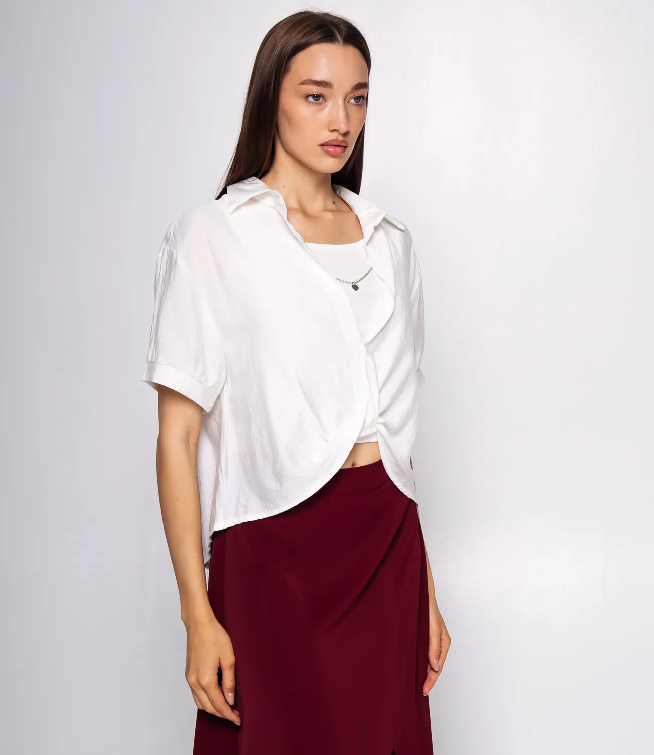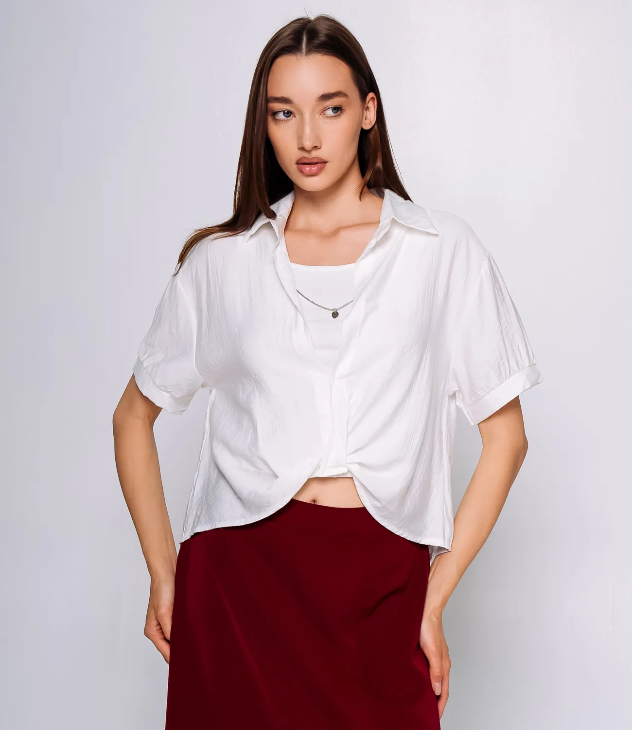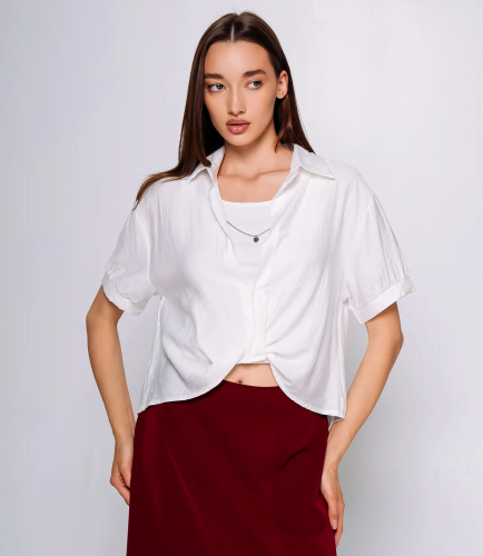 Этот комплект рубашка+топ — прекрасный выбор для вашего магазина, предлагая стильный и универсальный дизайн, который станет отличным дополнением к гардеробу ваших клиентов. Рубашка имеет свободный крой с закругленным низом и лёгким драпированием, что придаёт ей современный вид. Классический воротник и манжеты добавляют элемент строгости. Топ является облегающим и имеет минималистичный дизайн, подходящий как для повседневной носки, так и для более формальных случаев. тот комплект отлично смотрится с джинсами, брюками или юбками, что делает его подходящим для разнообразных поводов — от работы до прогулки с друзьями. Выполненная из ткани 100% полиэстер, комплект обеспечивает отличное качество и приятные тактильные ощущения. Независимо от сезона, он станет любимым элементом в гардеробе ваших клиентов. На странице сайта доступна таблица размеров, что позволит вашим покупателям легко найти подходящий вариант. Установленная цена делает эту футболку доступной для широкой аудитории, что обеспечит вам высокий уровень продаж. Рост модели 168 см., 85-63-92.