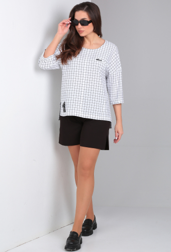 Модель: СВТ 581 молочно-черный Ро..показатьст: 164 см (рост модели на фото 170см) Сезон: Весна-Лето Тип ткани: лен 85%, пэ 10%, ликра 5%Летний костюм состоит из брюк и шорт.
