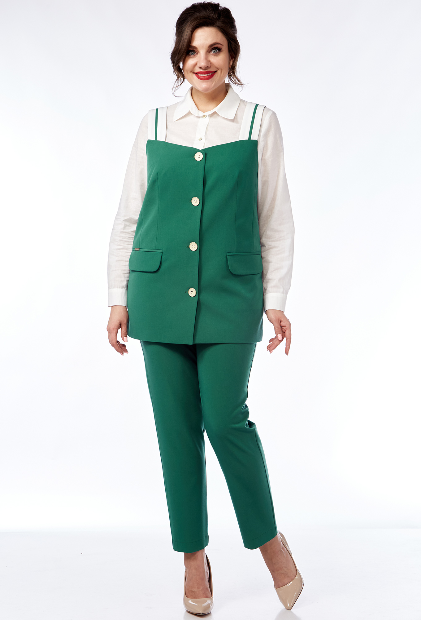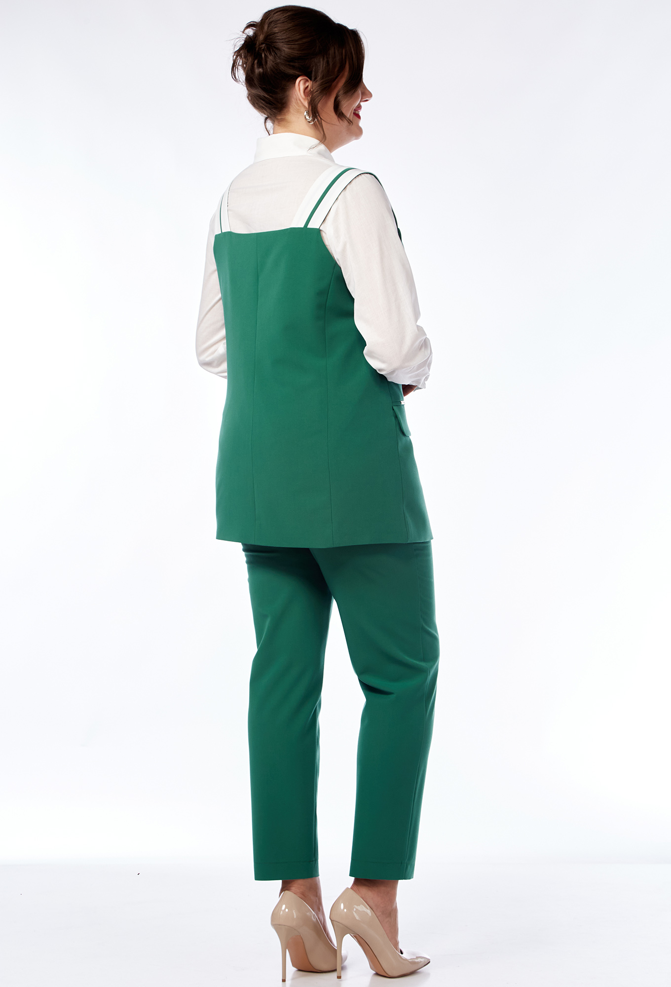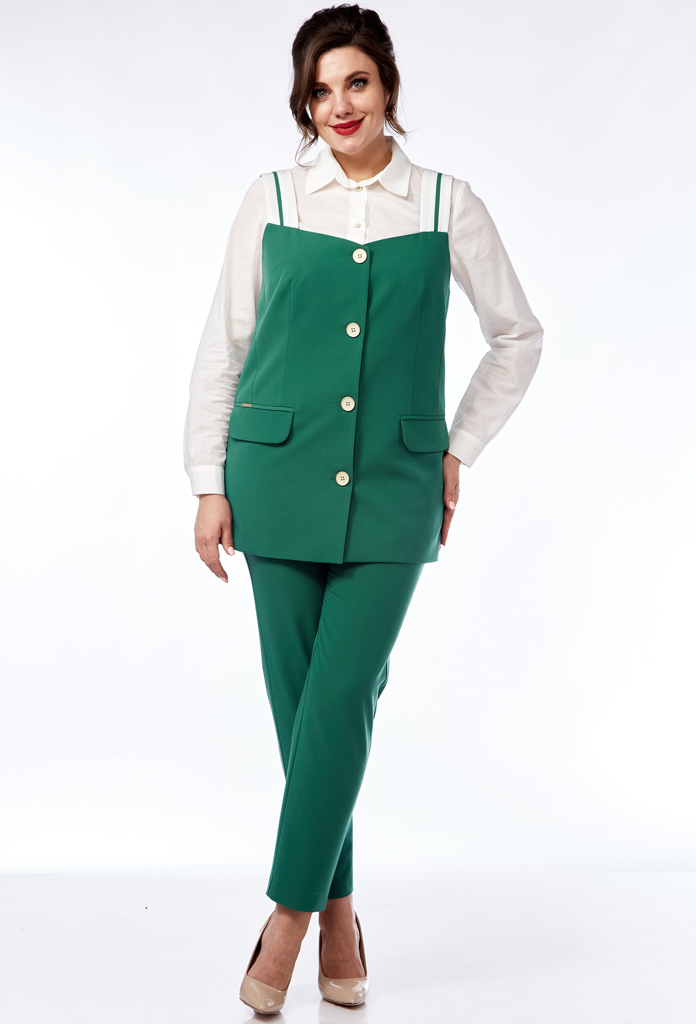 Модель: СВТ 591 зелёный Рост: 164..показать см (рост модели на фото 170см) Сезон: Весна-Лето Тип ткани: Блузка- 90% хлопок, 10% эластанЖакет, брюки- 85% лён, 10% полиэстер, 5% ликраКостюм тройка. Блузка-рубашка . Длина 62см, рукав 61см. Манжет 5см._x000D_