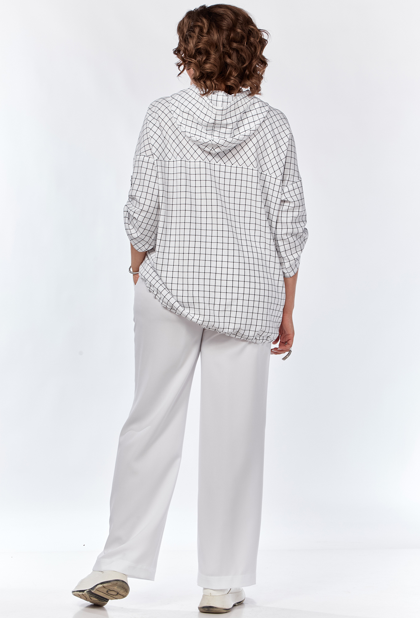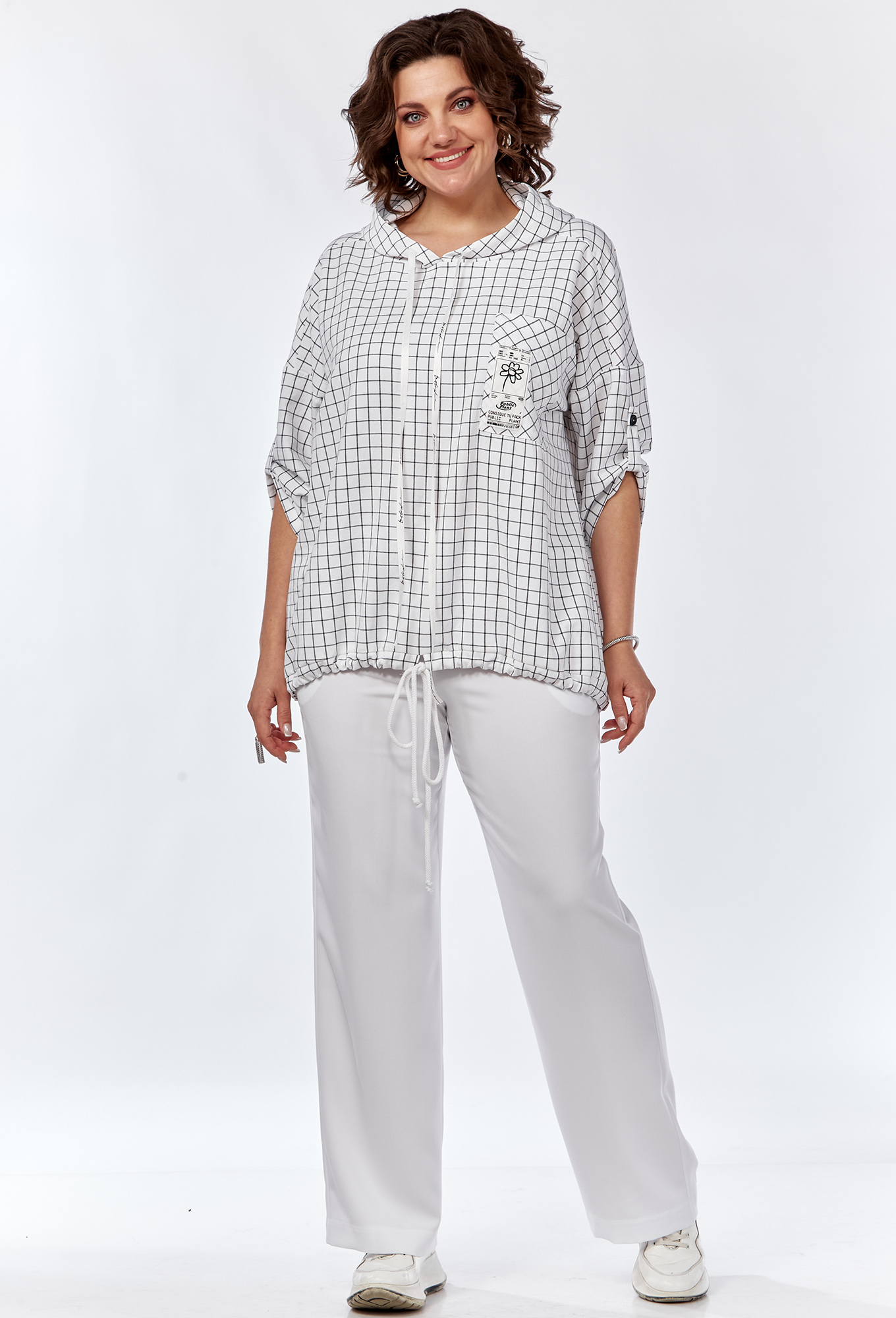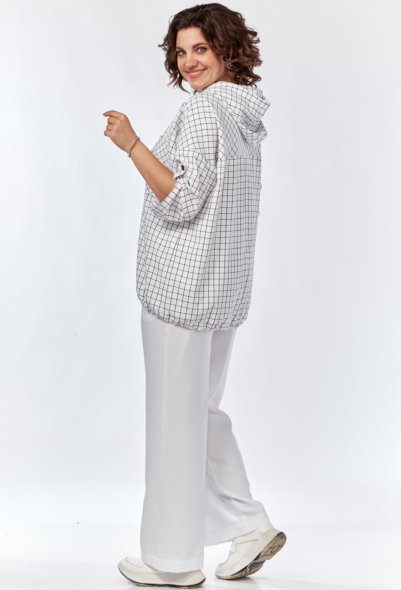 Модель: СВТ 601 белый клетка Рост..показать: 164 см (рост модели на фото 170см) Сезон: Весна-Лето Тип ткани: Лен 85%, пэ 10%, лайкра 5%Комплект двойка, блуза и брюки. Блуза: летучая мышь (можно регулировать пуговицей). По спинке кокетка 18см. Капюшон с декоративным шнуром. Брюки на резинке (4 см). Карманы есть, пояс на резинке 4см, ширина брюк 54см.