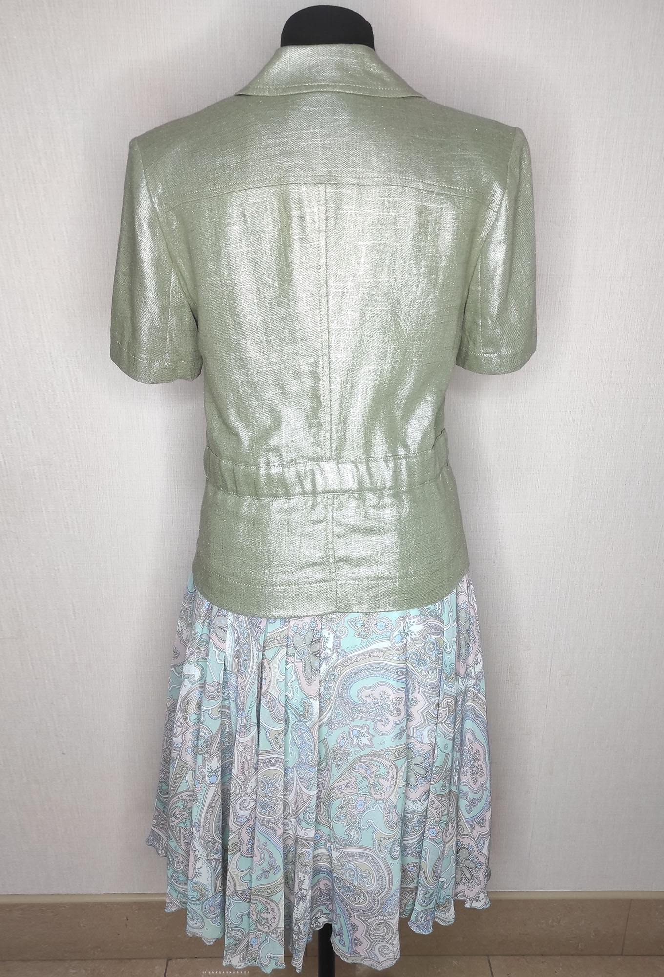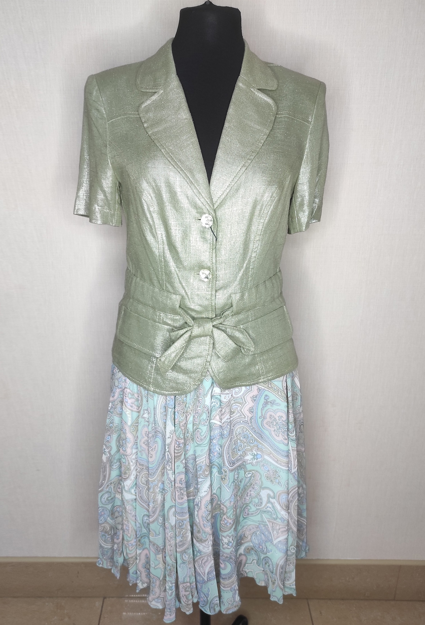 Длина жакета по спинке - 52 см. Длина рукава - 23 см. Длина юбки - 61 см.т: 164 см (девушка на фото ростом 170см)
