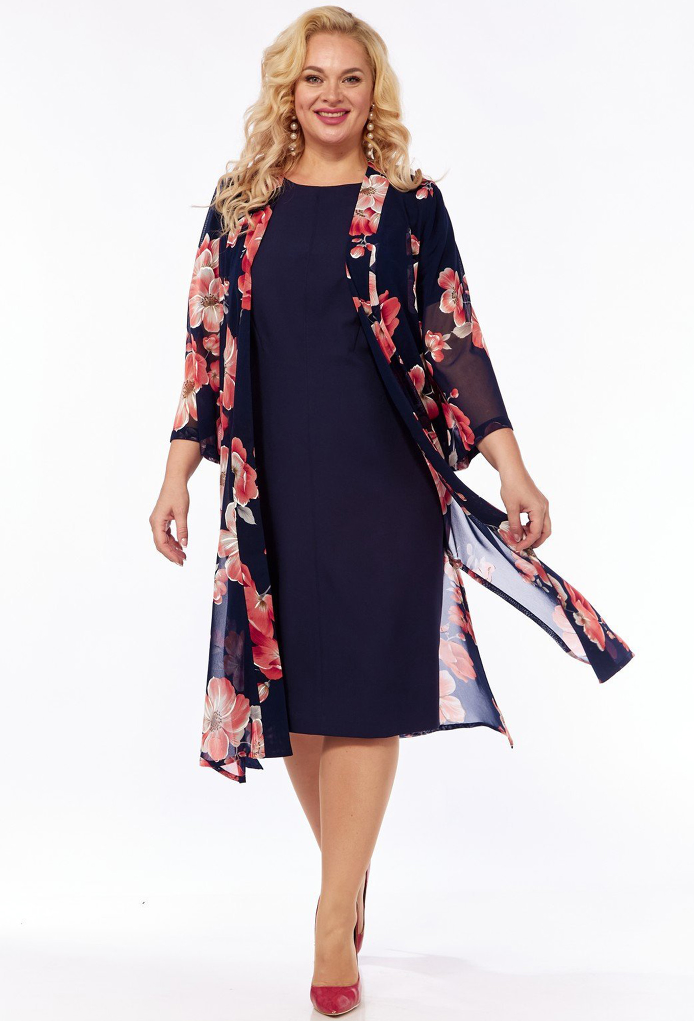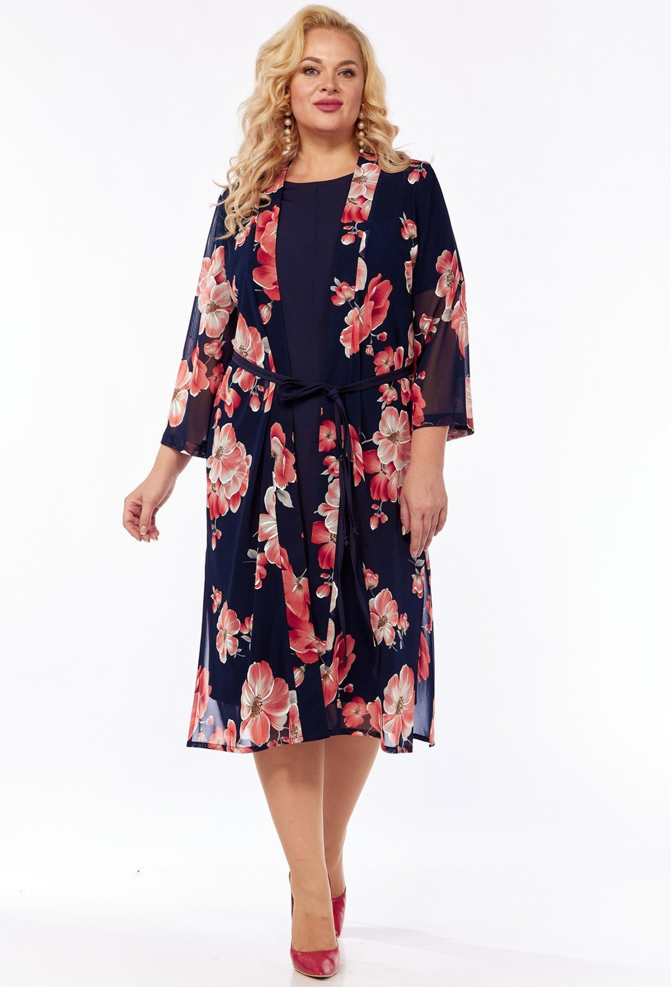 Модель: ВИЛЕНА 901 т. синий красные цветы<..показать/li> Рост: 164 см (девушка на фото ростом 170см) Сезон: Весна-Лето Тип ткани: Платье- Полиэстер – 64% Вискоза – 32% Спандекс – 4%Кардиган- Полиэстер – 100%Комплект женский 2-х предметный состоит из кардигана и платья. Кардиган прямого силуэта без застёжки с разрезами по боковым швам и притачной планкой по краю борта. Рукав длинный, расширенный к низу. Платье полуприлегающего силуэта с застёжкой на потайную тесьму «молнию» в среднем шве спинки. Перед со средним швом и декоративными рельефными швами от пройм к боковым швам. Спинка со средним швом заканчивающимся шлицей и талиевыми вытачками. Рукав втачной, одношовный, короткий. Горловина углублена, обработана обтачкой. Комплект укомплектован съёмным поясом – завязкой из ткани в цвет платья.
