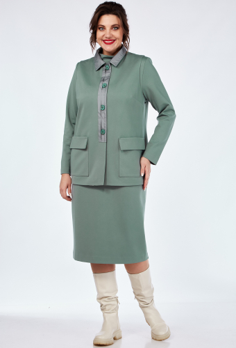 Модель: ВИЛЕНА 936 мята Рост: 164..показать см (девушка на фото ростом 170см) Сезон: Осень-Зима Тип ткани: Вискоза 70%, ПА 25%, спандекс 5%Костюм женский двухпредметный, состоящий из платья и жилета из трикотажного полотна с отделкой из плащёвки. Жилет женский полуприлегающего силуэта длиной до бёдер с центральной декоративной застёжкой с подрезом на 4 петли-пуговицы. По переду обработаны нагрудные вытачки, идущие из бокового шва и накладные карманы, имитирующие клапан. Спинка со средним швом. Воротник отложной. Жилет на подкладке. Платье женское, слегка зауженное к низу, полуприлегающего силуэта, длиной до колена с цельнокроеным воротником-стойкой. По деталям переда обработаны нагрудные вытачки. Спинка со средним швом, заканчивающимся шлицей. Рукава втачные, длинные, одношовные.