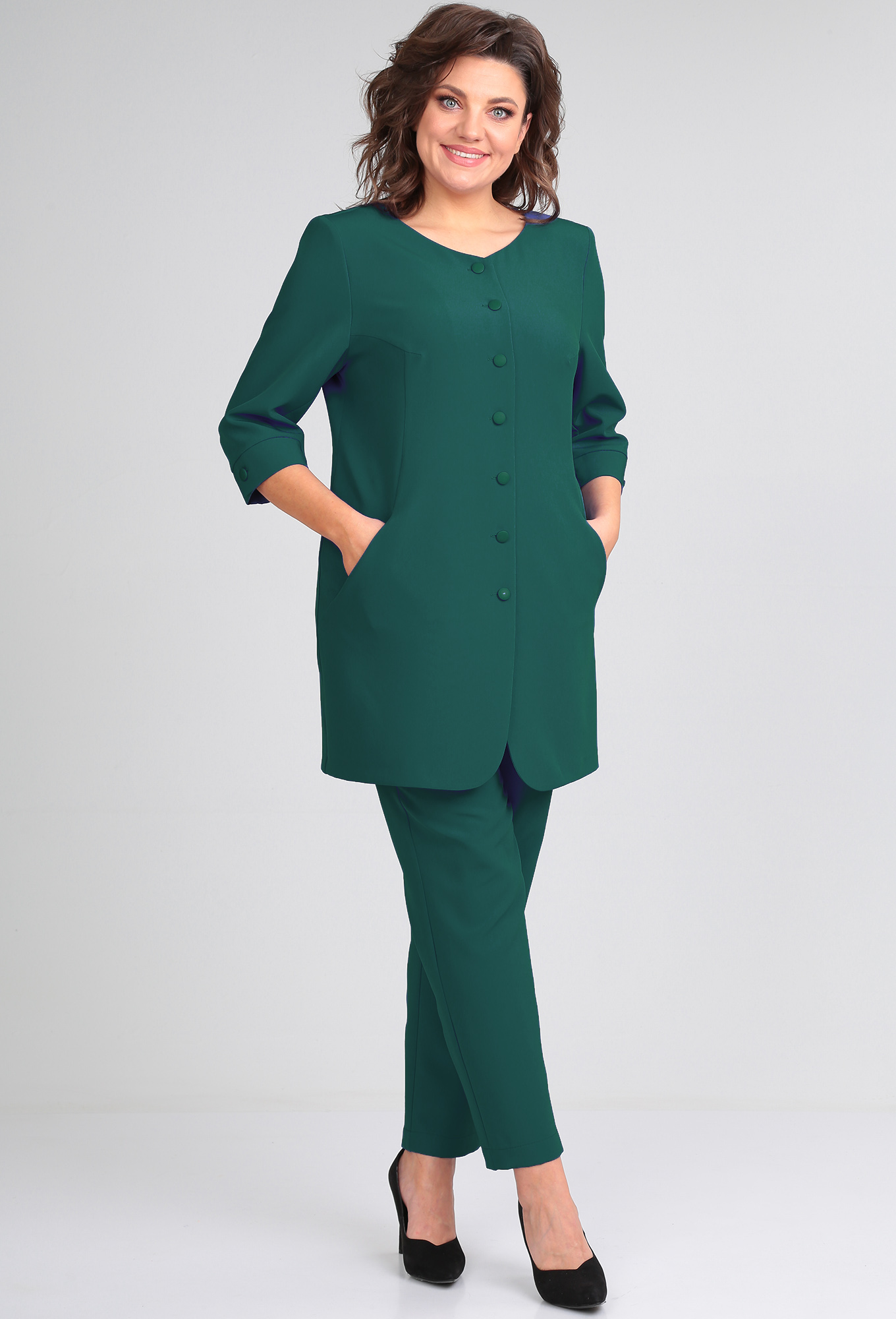 Модель: Виола Стайл 20630 изумруд ..показать>Рост: 164 см (рост модели на фото 170см) Сезон: Весна-Лето Тип ткани: ПЭ 95%, эластан 5%Костюм женский из двух предметов: жакет и брюки. Жакет полуприлегающего силуэта, без подкладки, застегивается на пуговицы. В шве стачивания боковых и нижних частей расположены карманы. Рукава двухшовные. Брюки классические, на молнии.