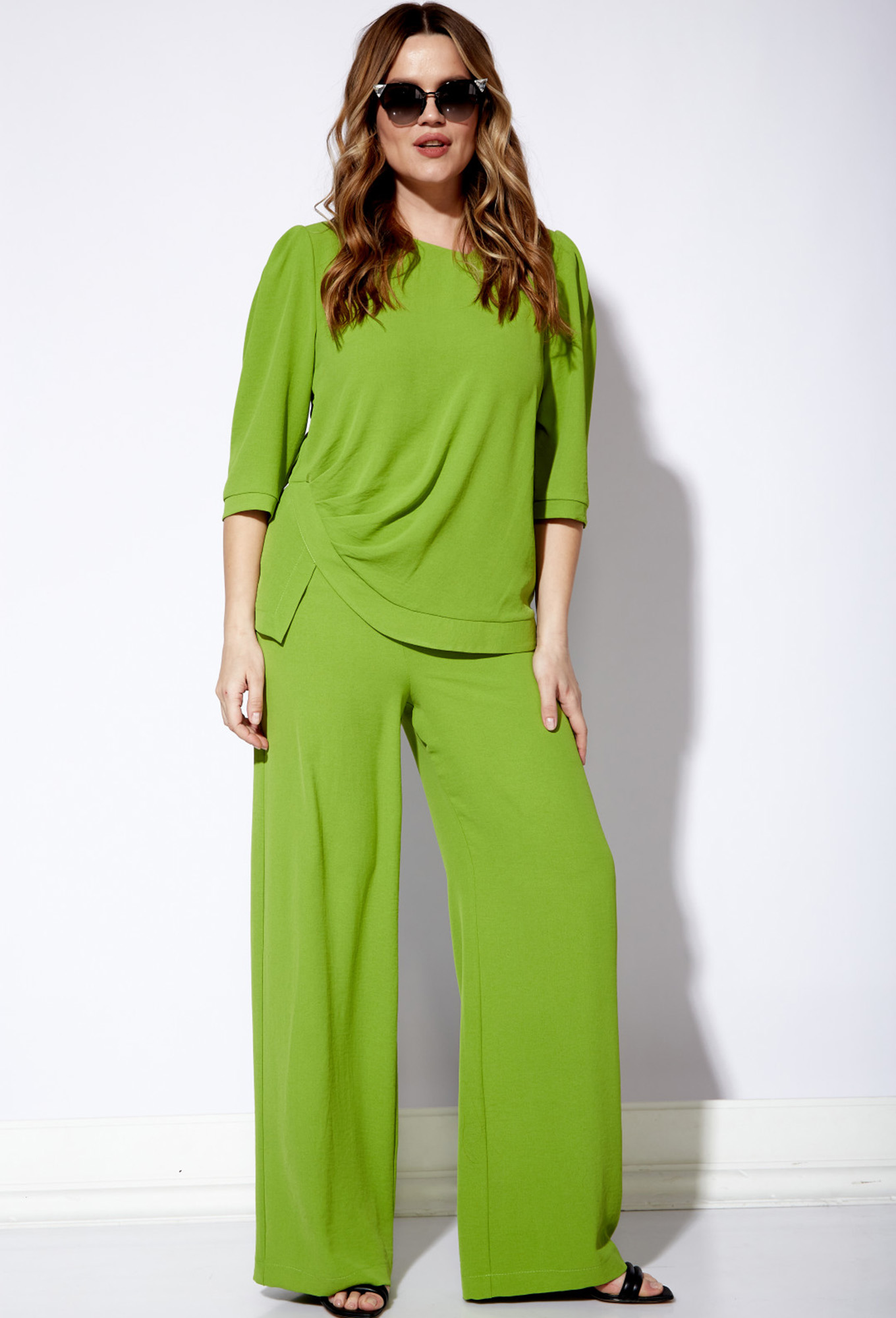 Модель: Виола Стайл 20635 салатовый <..показатьli>Рост: 164 см (рост модели на фото 170см) Сезон: Весна-Лето Тип ткани: Полиэстер 76%, хлопок 22%, эластан 2%Костюм из двух предметов: блуза и брюки. Струящаяся блуза прямого силуэта с ассиметричным V-образным вырезом горловины. Рукава втачные с небольшой сборкой по окату и притачными манжетами по низу с разрезом. Перед с ассиметричным низом , отрезной планкой и сборкой по правой стороне. Брюки прямого силуэта на притачном поясе с резинкой.