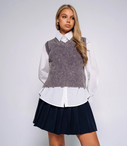 Комплект жилет и рубашка – это одежда, которая подчеркивает стиль и индивидуальность каждой женщины. Эта модель отлично подойдет для демисезонного периода. Его предпочитают покупательницы, которые ценят сочетание качества и доступной цены. Фасон подчеркивает привлекательность фигуры. Компания-производитель знает, как разработать стильные и оригинальные решения. Для изготовления использована ткань 20% полиэстера и 80% хлопка, которая характеризуется отличным качеством. Даже после многих стирок изделие не утратит первоначальной привлекательности. Вы будете носить его с большим удовольствием. Обратите внимание на цвет. Он является насыщенным и полностью соответствует фотографии на сайте. Чтобы вы были уверены в размере, мы представили на странице таблицу. Воспользовавшись ею, вы сможете сами обмерить себя и удостовериться. Установленная нами цена является доступной. Не откажите себе в удовольствии быть элегантной! Рост модели 168, 85-63-92.