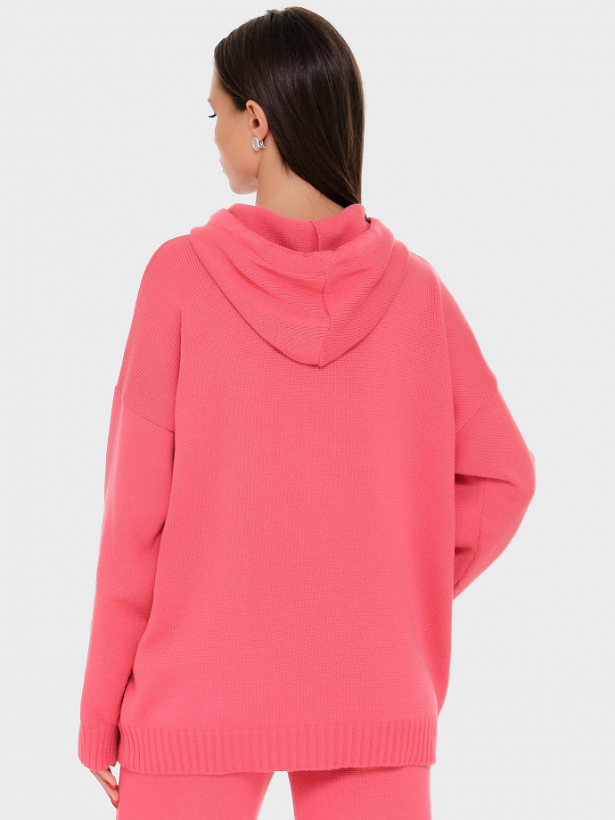 В кулису на капюшоне вставлен вязаный шнурок. Спереди карман кенруру.