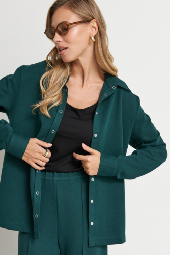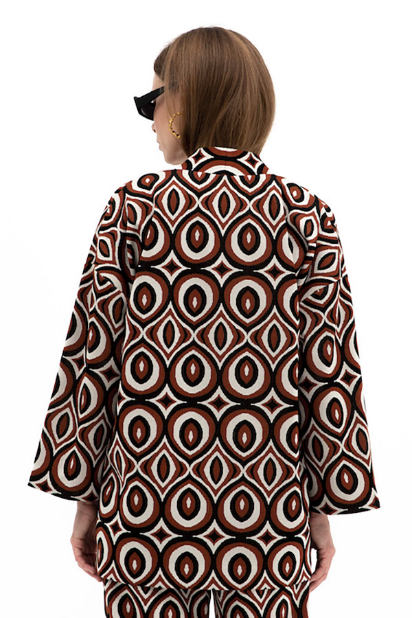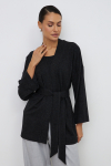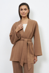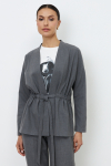 Кардиган из жаккардового эластичного полотна свободного силуэта с притачной планкой. Втачной широкий рукав в спущенную пройму. В комплекте пояс, позволяющий создавать приталенный силуэт.