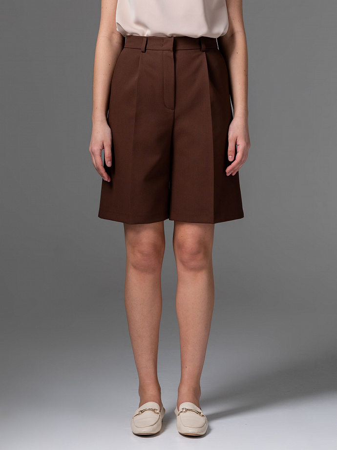Спереди по талии защипы, в подрезных бочках карманы. Сзади прорезной карман с листочкой. Пояс со шлёвками. Ремень в комплект не входит.