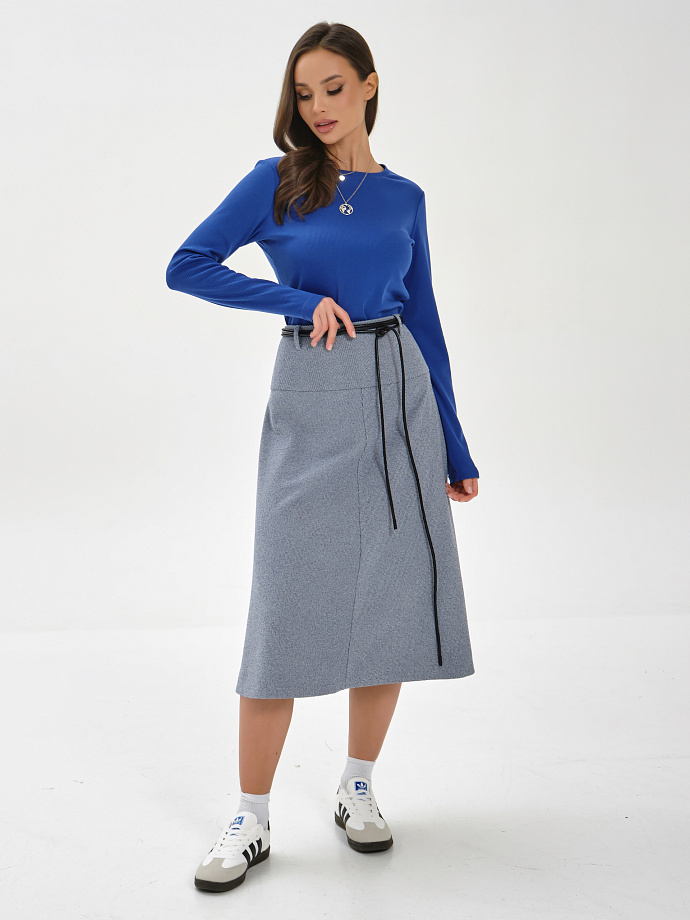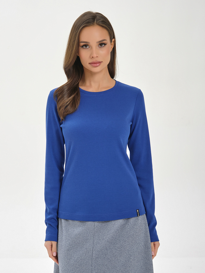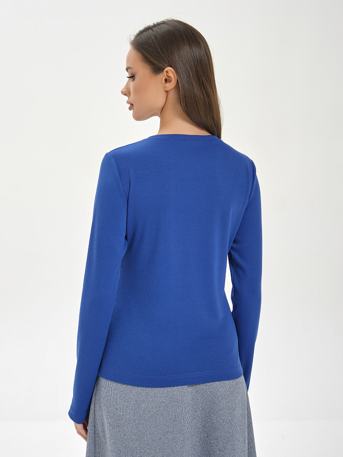 Модель полуприлегающего силуэта, с длинным рукавом. Горловина обработана бейкой. По низу декоративный элемент.