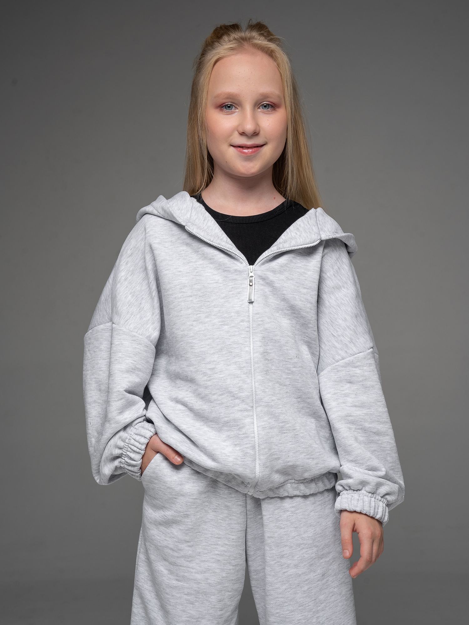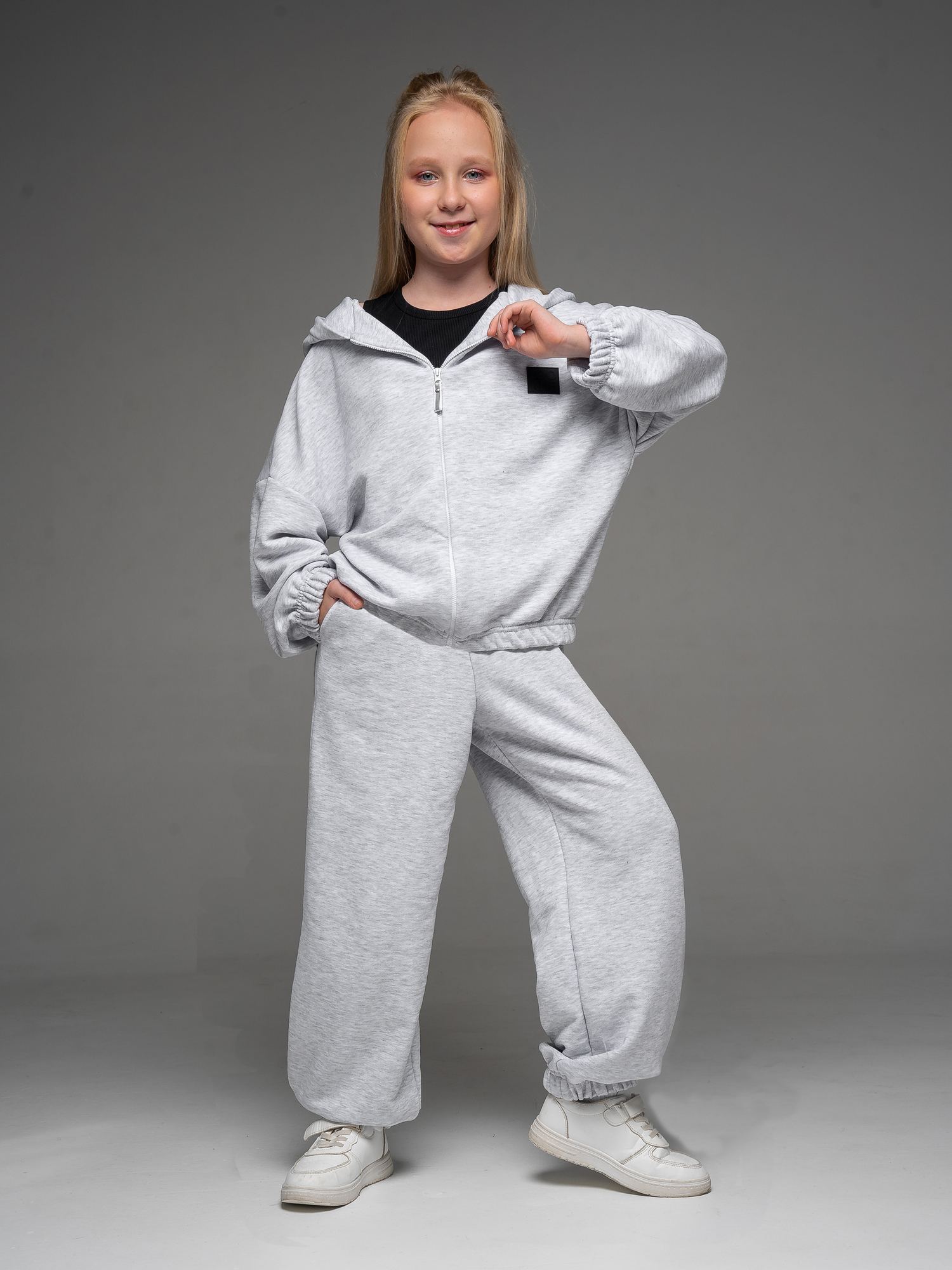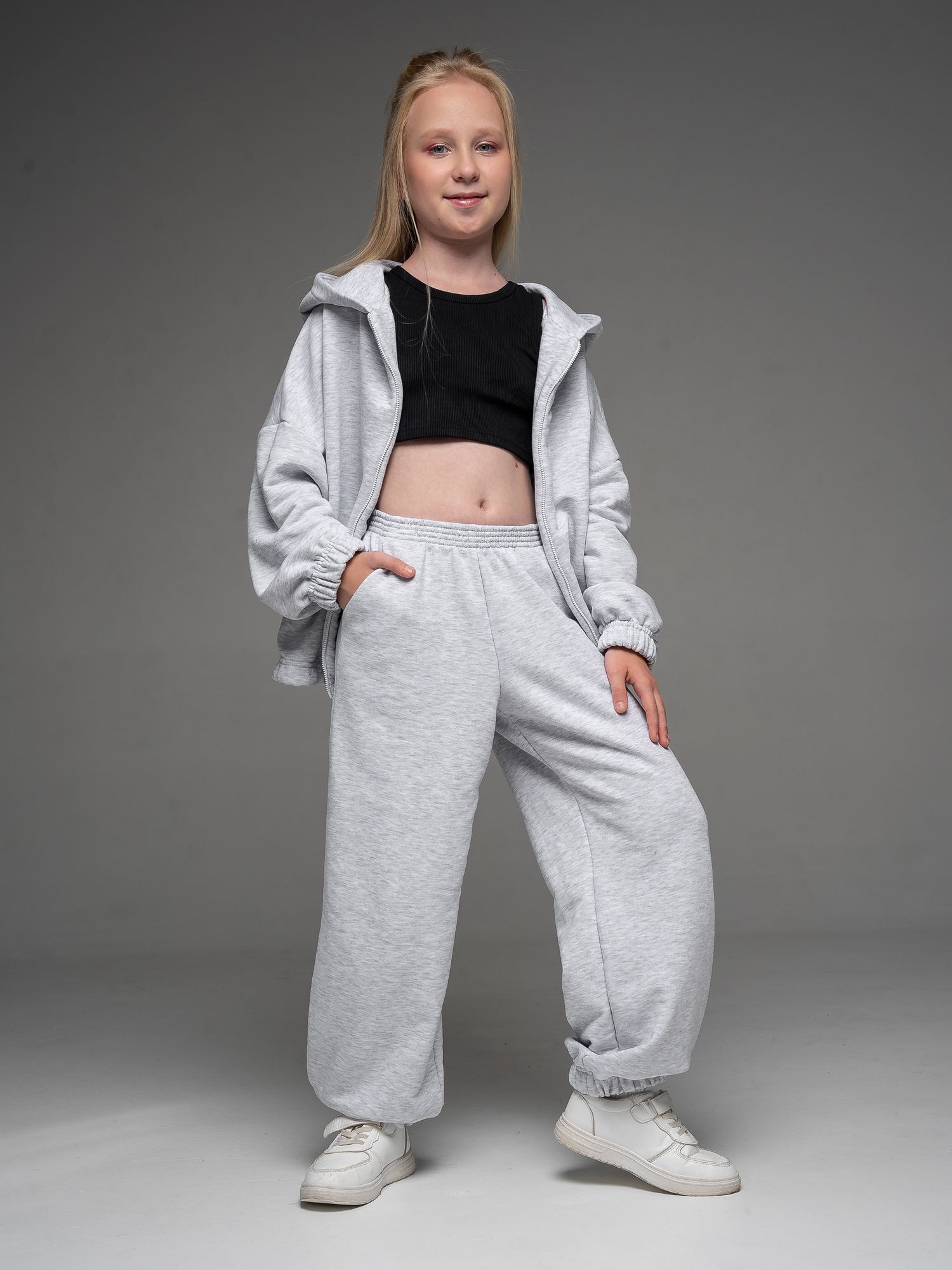 Спортивный костюм из футера(3х нитка) серого цвета для девочки свободного силуэта - идеальный выбор для активного отдыха и занятий спортом!