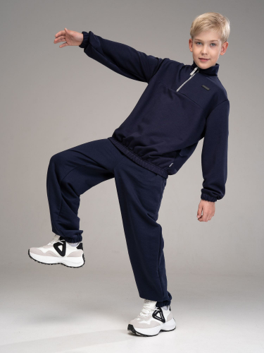 Этот спортивный костюм для подростка мальчика подойдет как для лета, так и для весны. Легкая толстовка с воротником-стойкой и длинными рукавами на резинке обеспечит комфорт в прохладные дни, а брюки-джоггеры с карманами в боковых швах дополнят образ и обеспечат свободу движения.