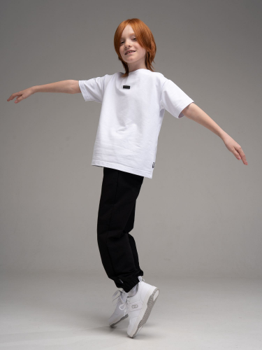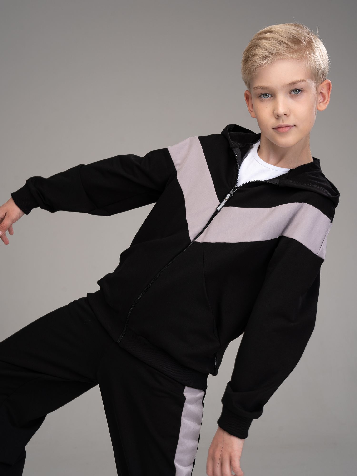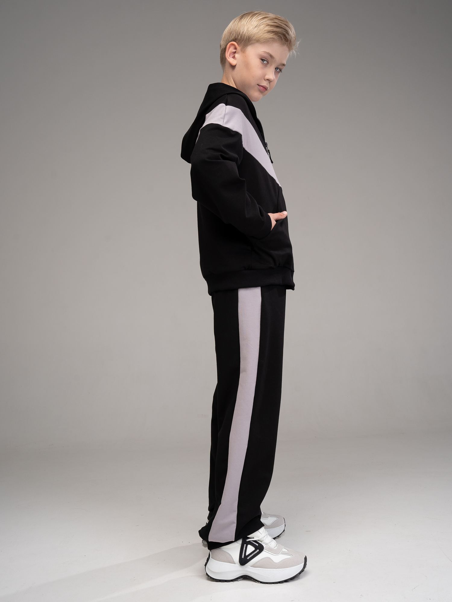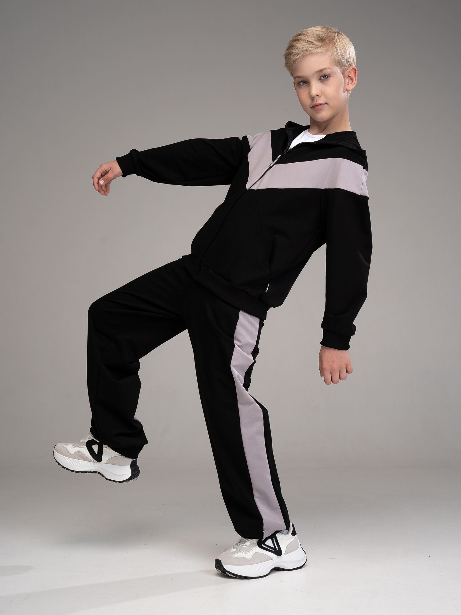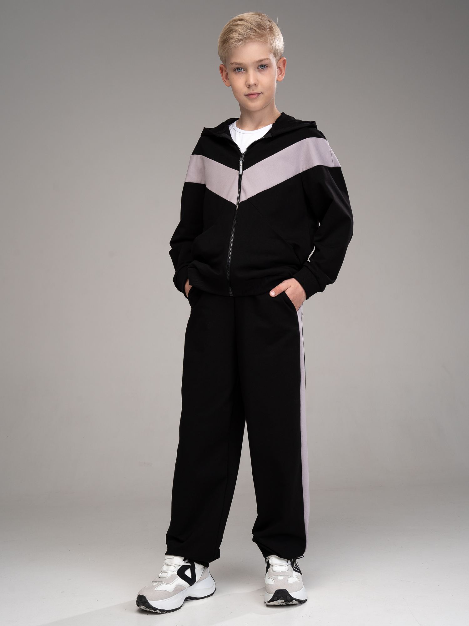 Спортивный костюм из футера черного цвета для мальчика свободного силуэта - идеальный выбор для активного отдыха и занятий спортом!