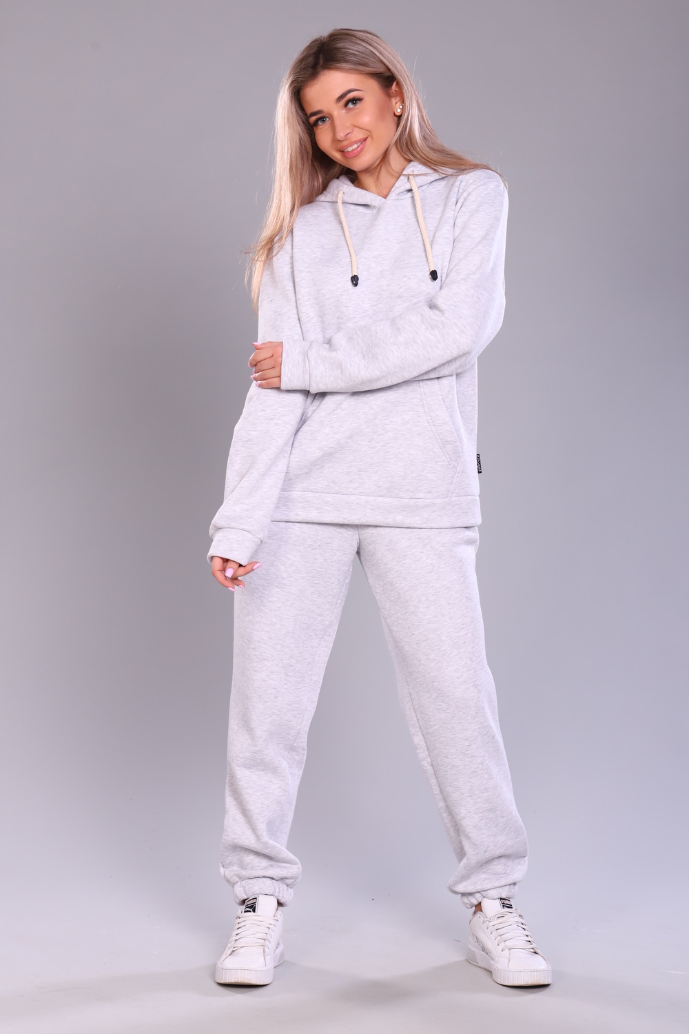 Теплый женский костюм толстовка + брюки. Толстовка с капюшоном, на животе карманы, рукава и низ отделаны манжетами. Брюки с карманами, внизу манжеты. Несколько вариантов расцветки. Размеры от 44 до 58.
