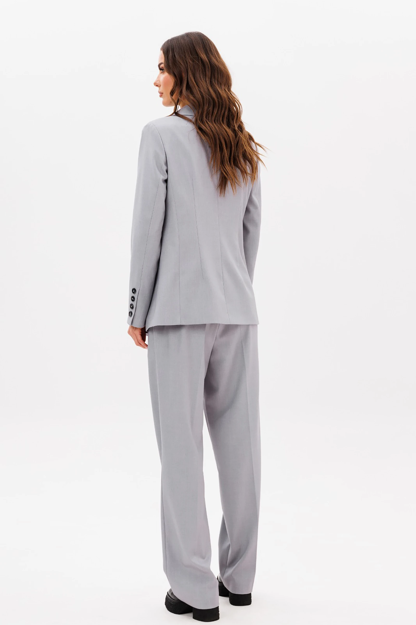 Феерил брючных костюмов продолжается! Такой комплект просто необходим в повседневной капсуле, ведь мы давно уже перестали приравнивать его к деловому стилю. Предметы костюма легко можно носить по отдельности и сочетать со многими вещами из уже имеющегося гардероба. Пиджак полуприлегающего силуэта, втачного покроя с центральной застежкой и классическим английским воротником. Полочка с отрезным бочком, с вытачкой защипом и боковым вертикальным карманом. Спинка с центральным швом, боковым рельефом и талиевой и плечевой вытачкой. Рукав двухшовный с отлетной шлицей с отделочными пуговицами.
