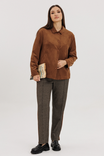 Брючный костюм в стиле casual из сочетания мягкого трикотажного вискозного полотна и благородной замши станет вашей универсальной находкой на каждый день.