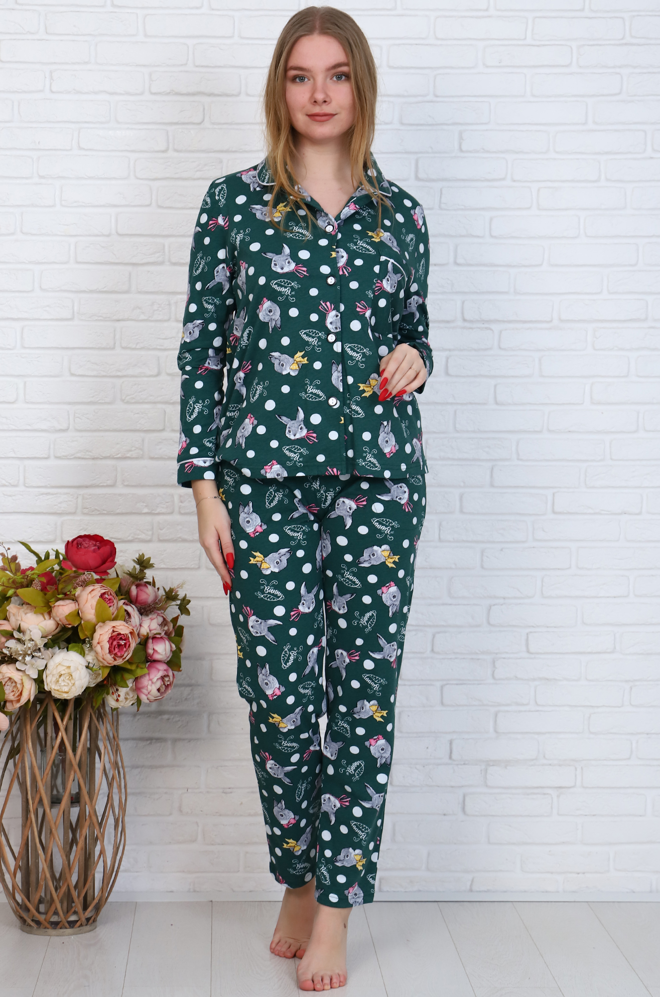 Очень популярная и стильная модель домашнего костюма-пижамки на пуговицах. Рубашка с отложным воротником и длинным рукавом на манжете, на груди накладной кармашек. Брючки слегка зауженные книзу, с боковыми удобными карманами, пояс на широкой резинке.