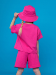 Костюм- двойка из футера сиреневого(фуксия) цвета для девочки . Состоит из футболки и шорт. Укороченная футболка свободного силуэта со спущенной линией плеча и рукавами длиной до локтя. Удобные шорты с боковыми карманами, пояс на эластичной резинке. Изделие выполнено из трикотажа премиального качества - ПЕНЬЕ, с содержанием хлопка более 92%