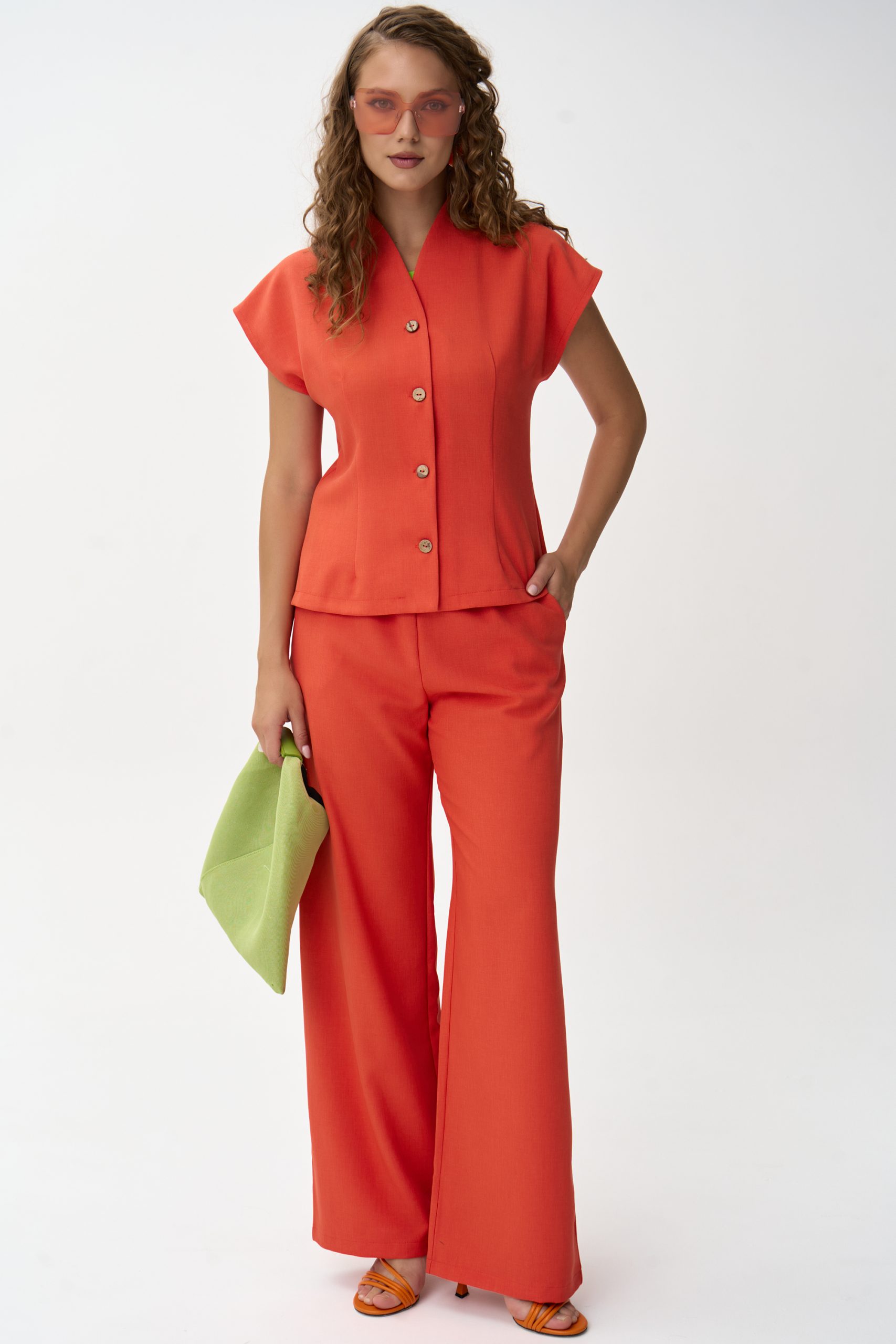 Дорогие девушки, позвольте представить вам настоящий must-have сезона – наш элегантный костюм который станет неотъемлемой частью вашего гардероба. Почему именно этот костюм? Давайте разберёмся. Во-первых, он выполнен из приятной костюмной ткани, что сразу придает ему роскошный вид. Вас точно заметят. Элегантный комплект состоящий из жилета и широких брюк –  идеальный вариант для разных событий и мероприятий. Но самое главное – это его способность легко интегрироваться в любые сочетания с любыми вещами из гардероба.  Настоящий ключ к вашему модному и современному образу. Попробуйте его сами и ощутите, как легко и изящно можно выглядеть в любой ситуации. (Брюки на резинке).