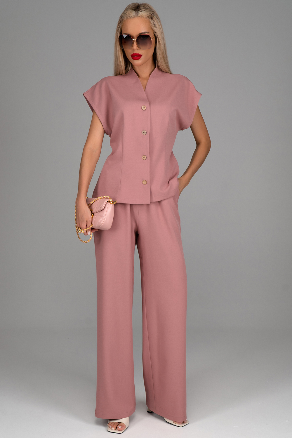 Дорогие девушки, позвольте представить вам настоящий must-have сезона – наш элегантный костюм который станет неотъемлемой частью вашего гардероба. Почему именно этот костюм? Давайте разберёмся. Во-первых, он выполнен из приятной костюмной ткани, что сразу придает ему роскошный вид. Вас точно заметят. Элегантный комплект состоящий из жилета и широких брюк –  идеальный вариант для разных событий и мероприятий. Но самое главное – это его способность легко интегрироваться в любые сочетания с любыми вещами из гардероба.  Настоящий ключ к вашему модному и современному образу. Попробуйте его сами и ощутите, как легко и изящно можно выглядеть в любой ситуации. (Брюки на резинке).