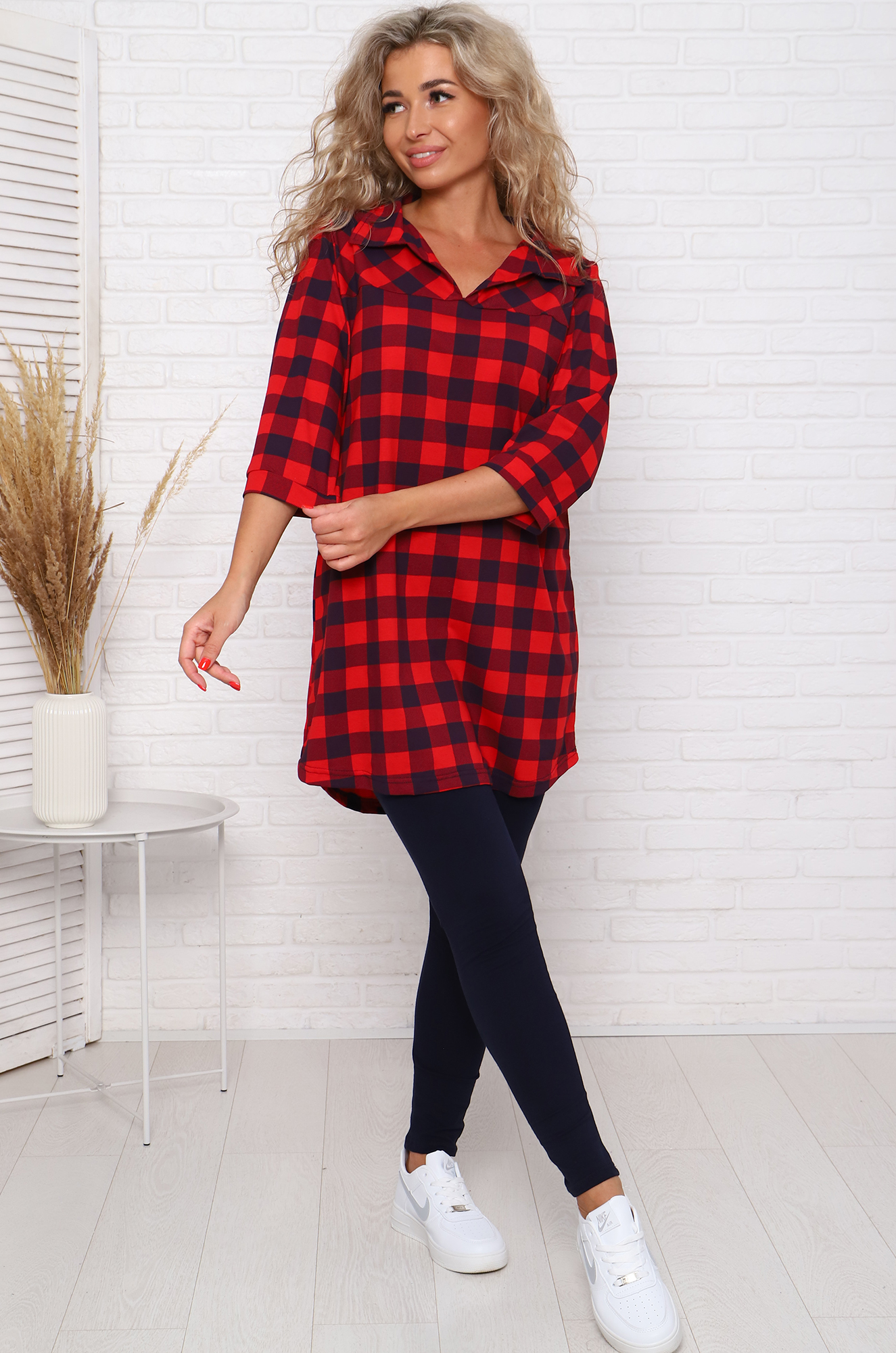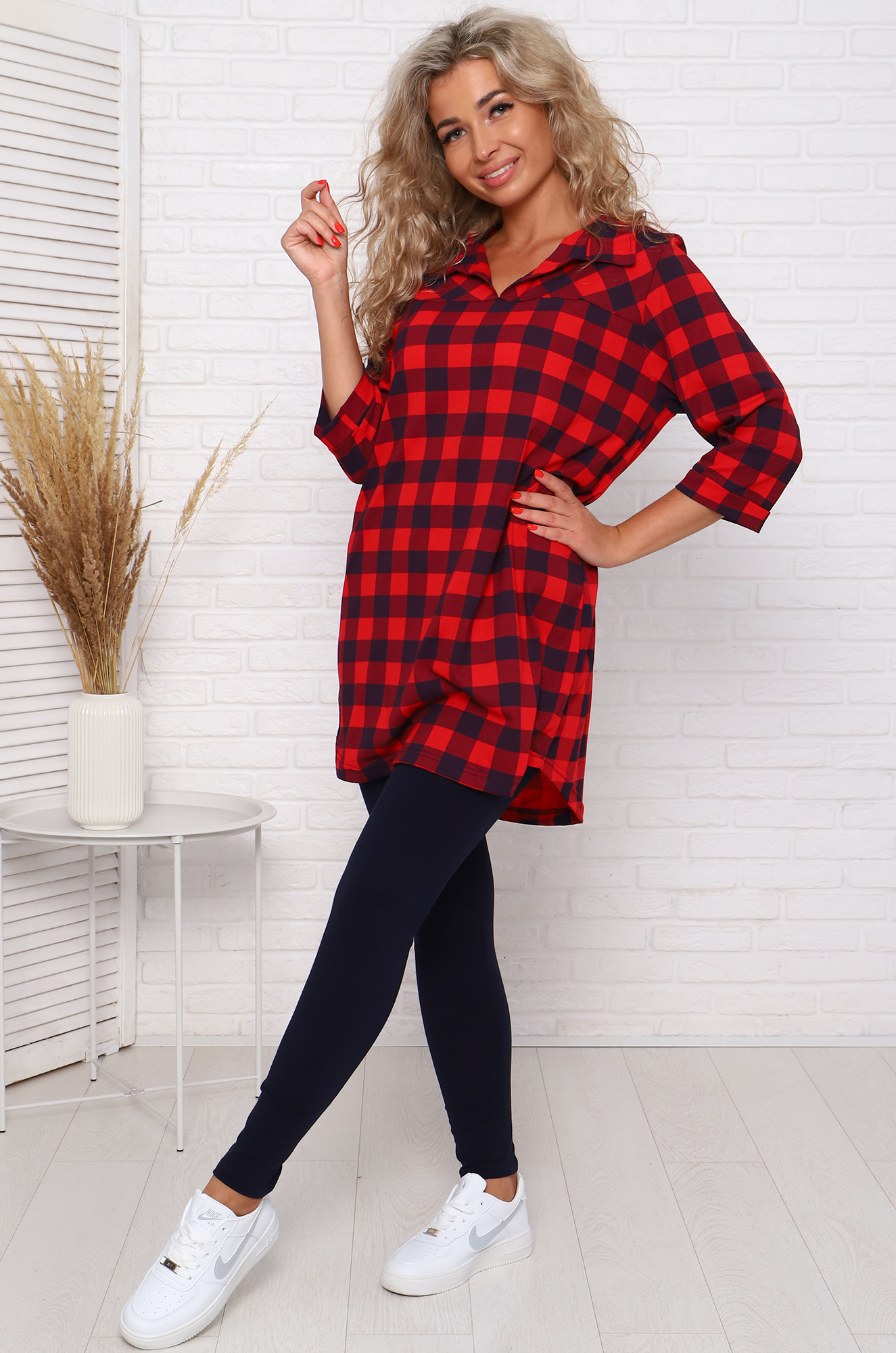 Удобный, стильный и невероятно женственный костюм для повседневного образа. Удлинённая туника-рубашка с отрезной кокеткой и отложным воротником. Модель с удлинённой спинкой, комфортный рукав 3/4. Леггинсы облегающие, пояс на комфортной, широкой резинке.