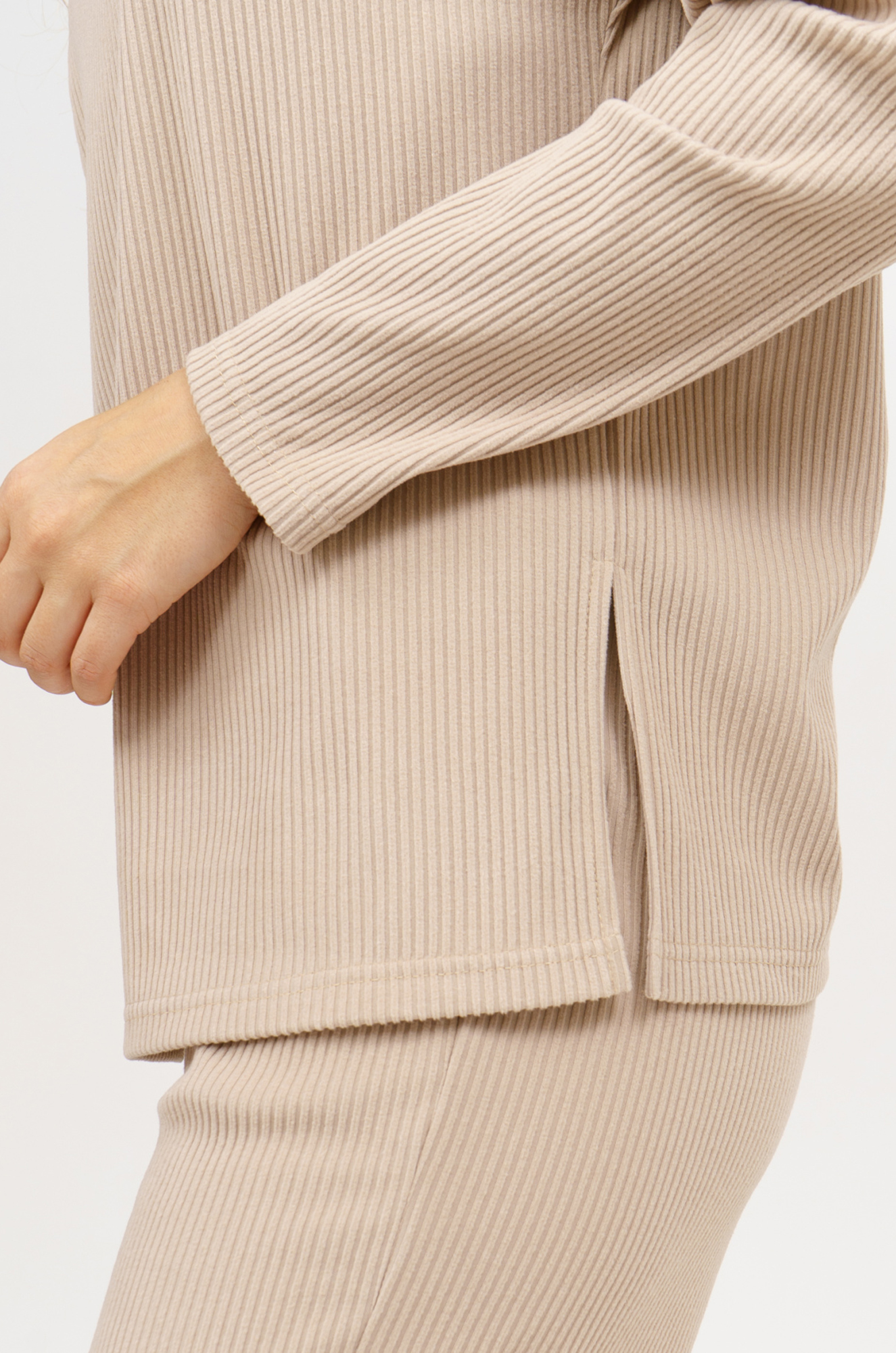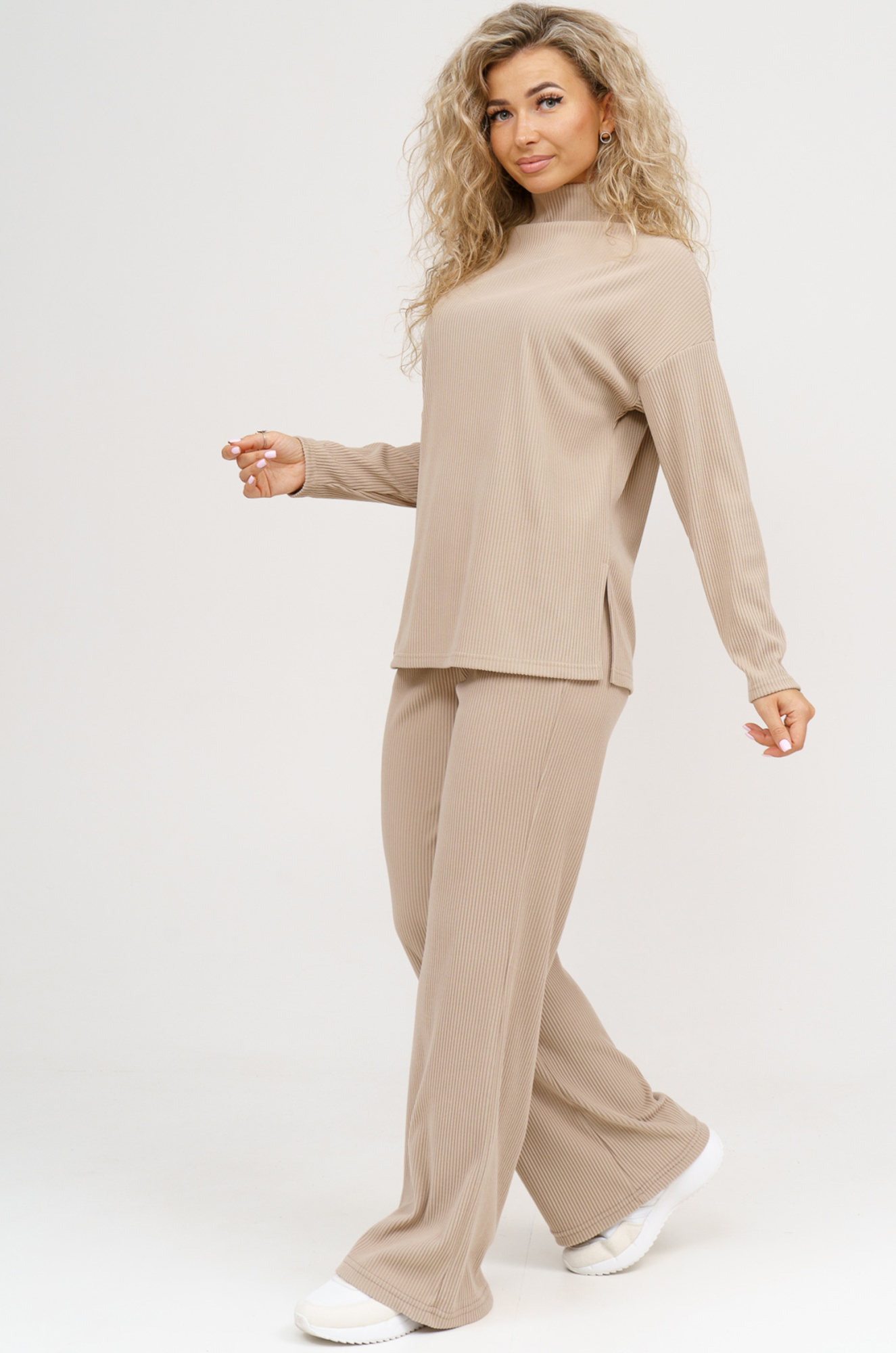 Женский костюм с брюками из ткани "лапша" отлично подойдет как для домашнего отдыха, так и для повседневной носки. Струящийся свитшот с воротником стойка, спущенной линией плеча и разрезами по бокам выгодно подчеркнет фигуру и придаст женственности. Широкие брюки с двумя боковыми карманами придадут стильность образу. Подчеркните свою индивидуальность с этим модным костюмом.