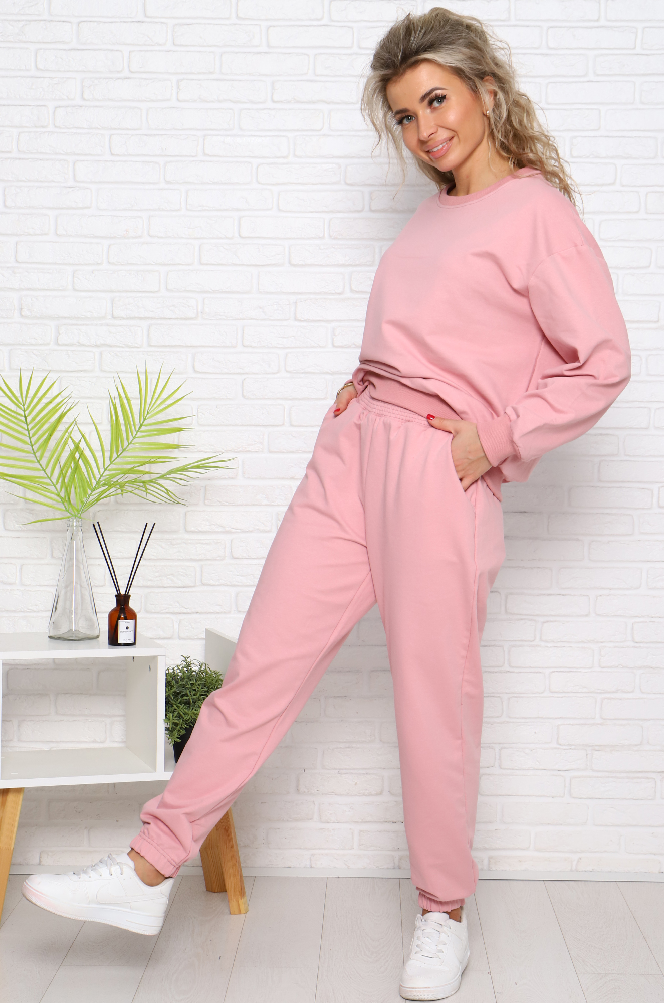 Самая популярная, удобная и любимая одежда каждой девушки - одежда спортивного стиля! Костюм свободного кроя в самых модных оттенках смотрится безупречно и стильно. Свитшот снизу на манжете из эластичной рибаны, плечевой шов спущенный. Брюки снизу на резинке, удобные боковые карманы, пояс на широкой резинке, прострочен на спец. машине.
