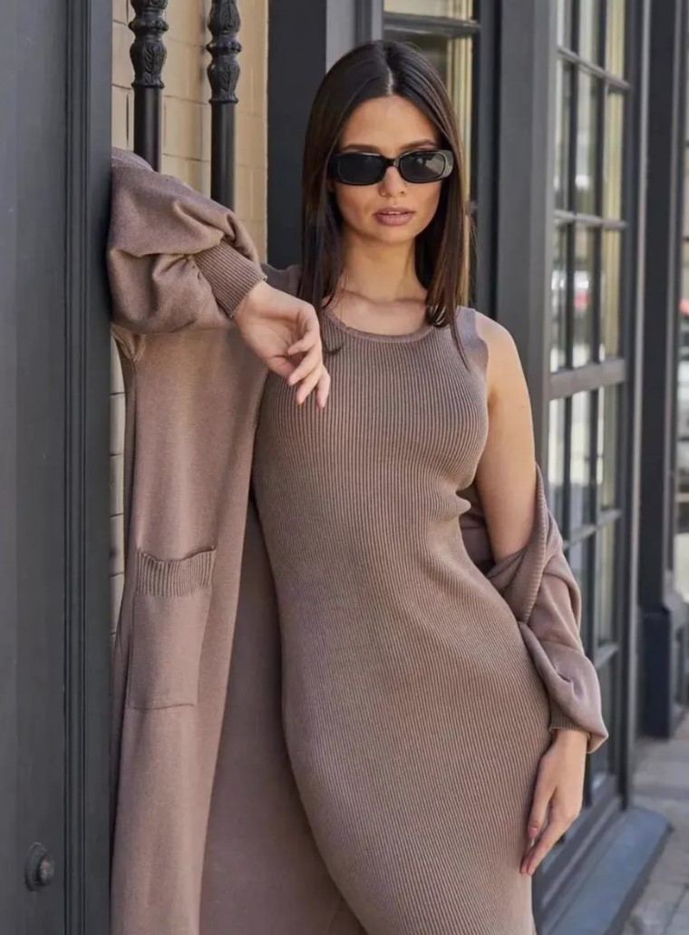 Костюм: кардиган и платье (вязаный трикотаж)