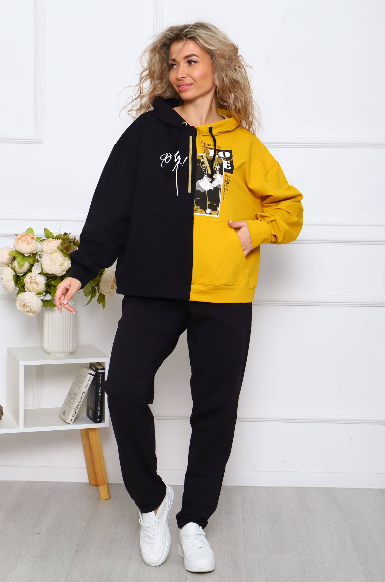 Костюм "Контрасты 2" футер (чёрный-горчица)
