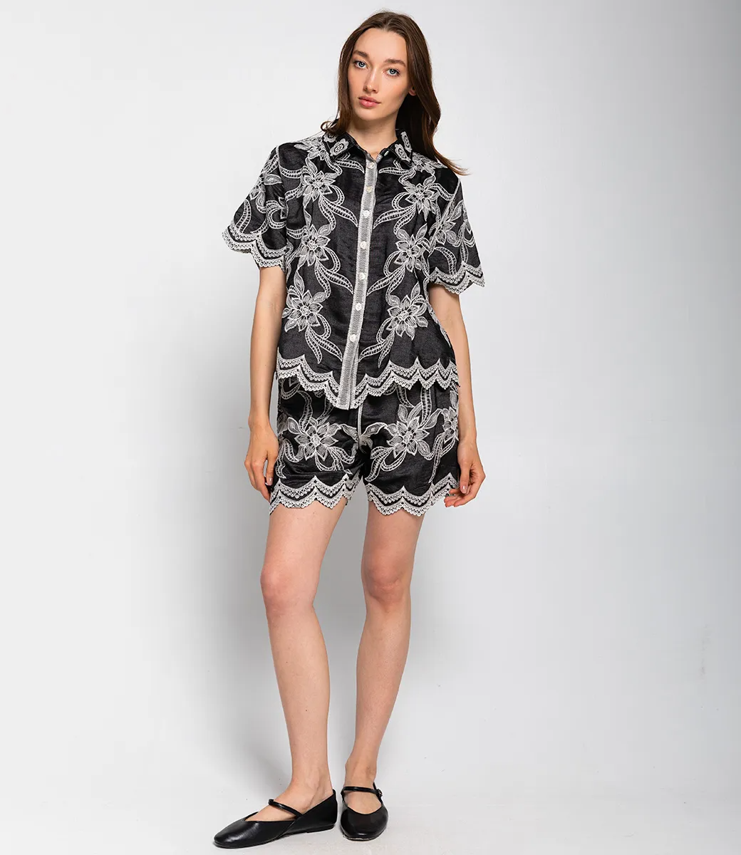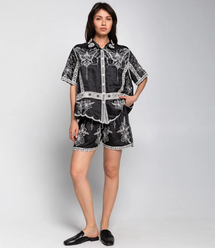 Костюм – это эффектная часть гардероба, подчеркивающая женственность и уникальность каждой представительницы прекрасного пола. Костюм состоит из двух частей — рубашки и шорт. Воротник классического типа, короткие рукава, также украшены вышивкой с цветочными и геометрическими узорами, включающими крупные бабочки. Нижний край рубашки оформлен волнистым краем с вышитым белым орнаментом. Шорты выполнены цветочными узорами и геометрическим орнаментом по низу. Для пошива этого костюма использованы ткань с составом 65% хлопок и 35% полиэстер, что гарантирует отличное качество и долговечность. Костюм легко выдерживает множество стирок, сохраняя свою первоначальную привлекательность и комфорт. Обратите внимание на цвет и фактуру ткани – они полностью соответствуют фото на сайте и прекрасно дополнят любой летний образ. Для уверенности в размере мы представили на странице таблицу, чтобы вы могли самостоятельно обмерить себя и убедиться в идеальной посадке костюма. Предложенная нами цена является приемлемой, что делает этот комплект отличным выбором для оптовых покупателей. Не упустите возможность предложить вашим клиенткам этот стильный костюм, который станет их любимым выбором для летних дней! Позвольте вашим покупательницам наслаждаться комфортом и элегантностью с этим великолепным комплектом! Рост 168, 85-63-92. Вы можете заказать онлайн презентацию на интересующие Вас модели. Наши менеджеры свяжутся с Вами и проведут индивидуальную видеотрансляцию, помогут составить заказ и ответят на Ваши вопросы.