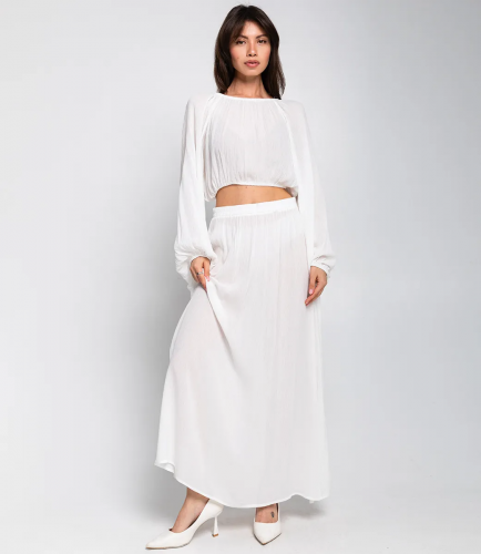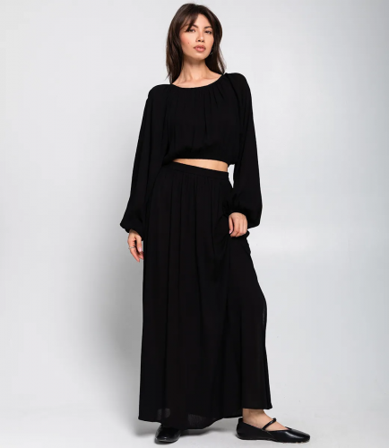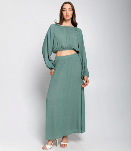 Костюм – это эффектная часть гардероба, подчеркивающая женственность и уникальность каждой представительницы прекрасного пола. Костюм состоит из двух элементов: укороченного топа и длинной юбки макси. Топ свободного кроя с длинными рукавами, которые слегка расширяются к манжетам. Топ длиной чуть выше талии, за счёт чего создаёт акцент на талии. Юбка макси длины, свободного кроя, с эластичной талией и мягкими складками, которые придают плавность и лёгкость силуэту. Для пошива этого костюма использованы ткань с составом 100% вискоза что гарантирует отличное качество и долговечность. Костюм легко выдерживает множество стирок, сохраняя свою первоначальную привлекательность и комфорт. Обратите внимание на цвет и фактуру ткани – они полностью соответствуют фото на сайте и прекрасно дополнят любой летний образ. Для уверенности в размере мы представили на странице таблицу, чтобы вы могли самостоятельно обмерить себя и убедиться в идеальной посадке костюма. Предложенная нами цена является приемлемой, что делает этот комплект отличным выбором для оптовых покупателей. Не упустите возможность предложить вашим клиенткам этот стильный костюм, который станет их любимым выбором для летних дней! Позвольте вашим покупательницам наслаждаться комфортом и элегантностью с этим великолепным комплектом! Рост 168, 85-63-92. Вы можете заказать онлайн презентацию на интересующие Вас модели. Наши менеджеры свяжутся с Вами и проведут индивидуальную видеотрансляцию, помогут составить заказ и ответят на Ваши вопросы.