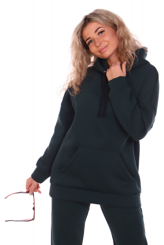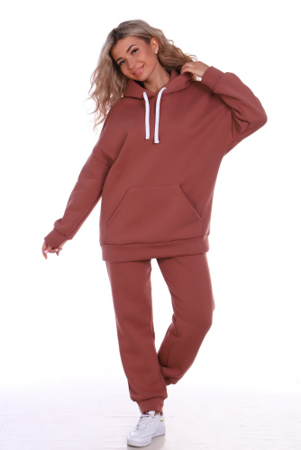 Ультрамодный костюм из качественного турецкого футера с начесом. В комплект входит толстовка и брюки. Толстовка свободного кроя с капюшоном и накладным карманом, брюки на резинке и с манжетами внизу брючин. В этом костюме вам будет необыкновенно тепло и уютно.