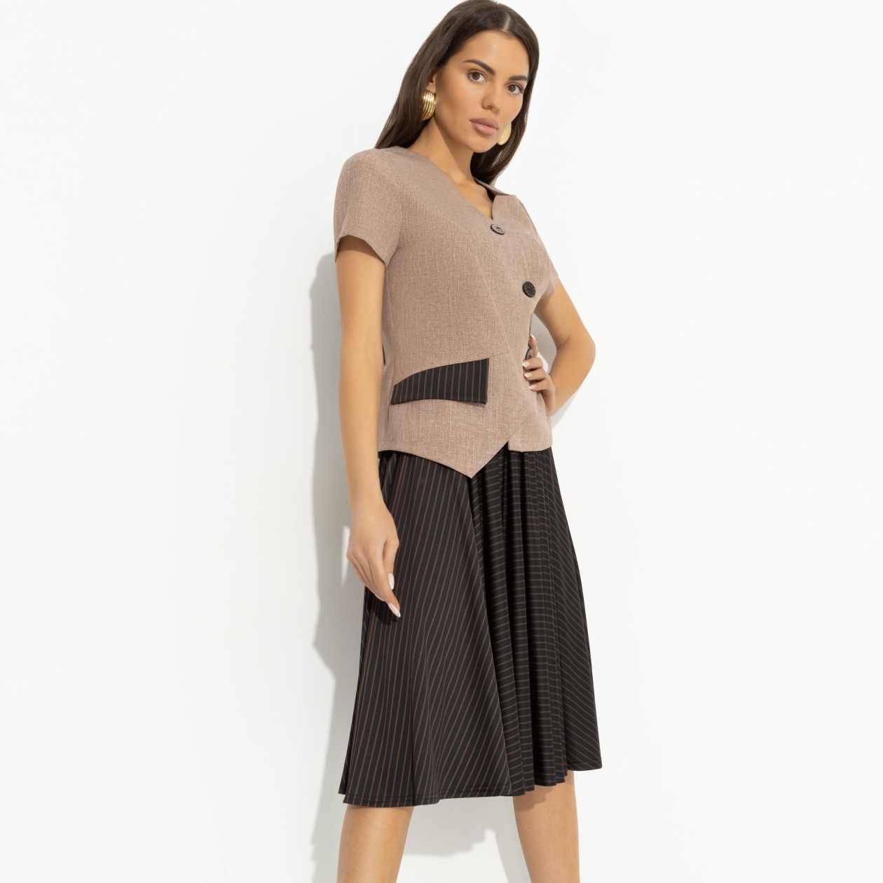 Если вы ищете идеальный костюм трикотажный женский с юбкой для прохладных дней, то этот комплект — ваш лучший выбор. Пояс юбки на резинке обеспечивает комфорт и свободу движений, а приталенный жакет с пуговицами добавляет нотку классической элегантности. Цвета бельгийского шоколада создают ощущение тепла и уюта, идеально подходя для тех, кто ценит не только стиль, но и комфорт. Особенно актуально это для закупок оптом, когда каждый элемент должен быть безупречным и привлекать внимание.