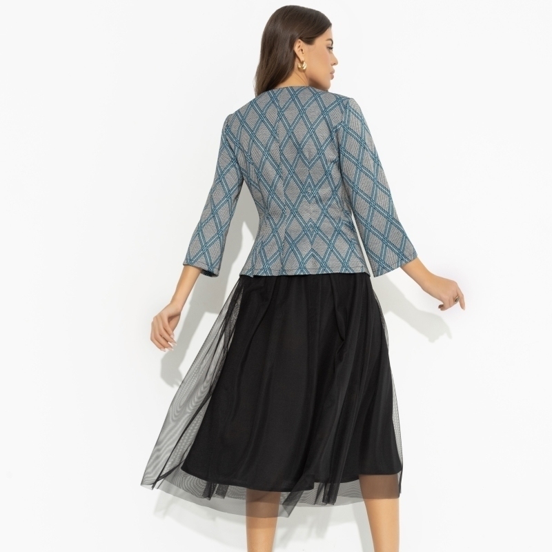Смотрите на этот костюм с юбкой как на воплощение элегантности и стиля — настоящий сокровищ для любой модницы. Этот костюм с юбкой женский уникален своей комбинацией материалов: трикотаж «жаккард», сетка и креп создают впечатляющий ансамбль, который привлекает внимание с первого взгляда. Вязаный костюм женский с юбкой подойдёт для различных событий. Вы можете быть уверены, что каждый элемент, от приталенного укороченного жакета до миди-юбки, был разработан с особым вниманием к деталям. Ассиметричный дизайн и завязки придают образу динамичность и современность, что позволяет выделяться на фоне других.