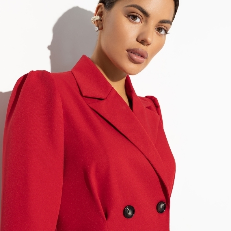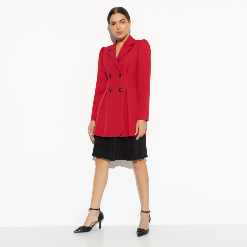 Помнишь, каким радостным шагом мчала на свое первое 1 сентября? Воздух такой густой и тягучий, бантики и гладиолусы, что ростом выше детей. Там и она – первая учительница в красном жакете. Пример элегантности на всю жизнь. В составе комплекта удлиненный двубортный жакет и плиссированая юбка. Жакет с подплечниками. Приталенный силуэт.