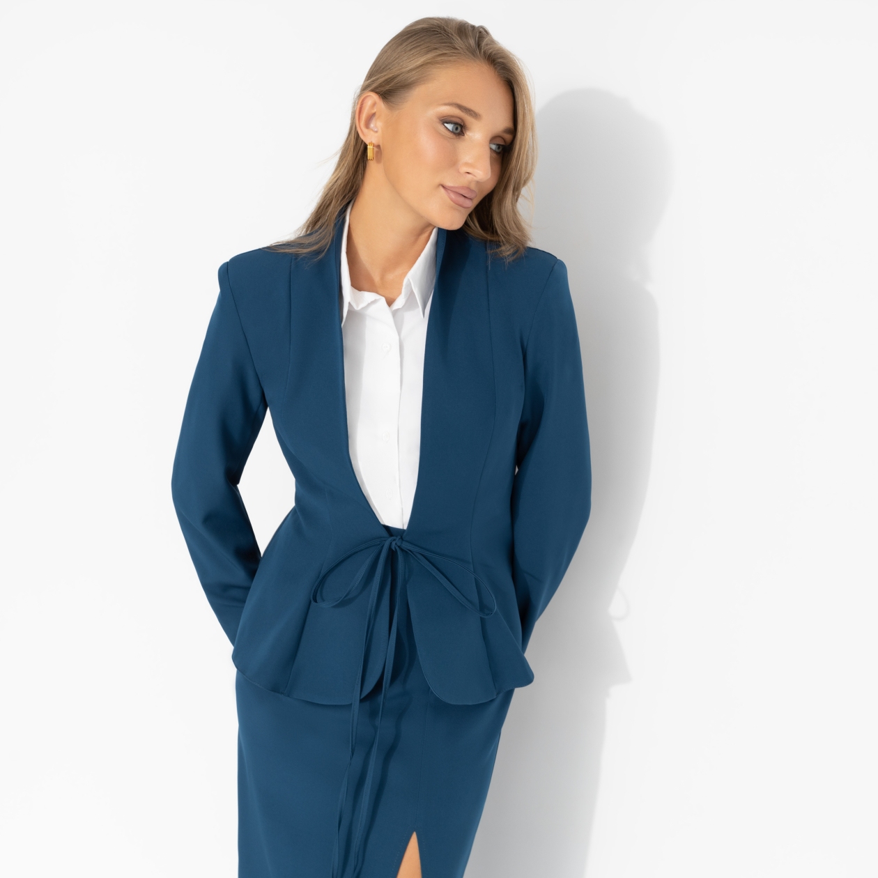 Каждое утро начиналось с дефиле к своему рабочему месту. Таковы преимущества работы в open space пространстве. Костюм ЧАРУТТИ создан именно для такой профессии, предполагающей долгие прогулки по офису. Иначе как все увидят идеально сидящий жакет и юбку с разрезом?! Работа мечты – это когда тебе есть куда прийти в своем лучшем наряде. Комплект состоит из юбки в длине миди и укороченного жакета. Юбка с глубоким разрезом застегивается на скрытую молнию. Жакет приталенного силуэта с тонкими завязками.
