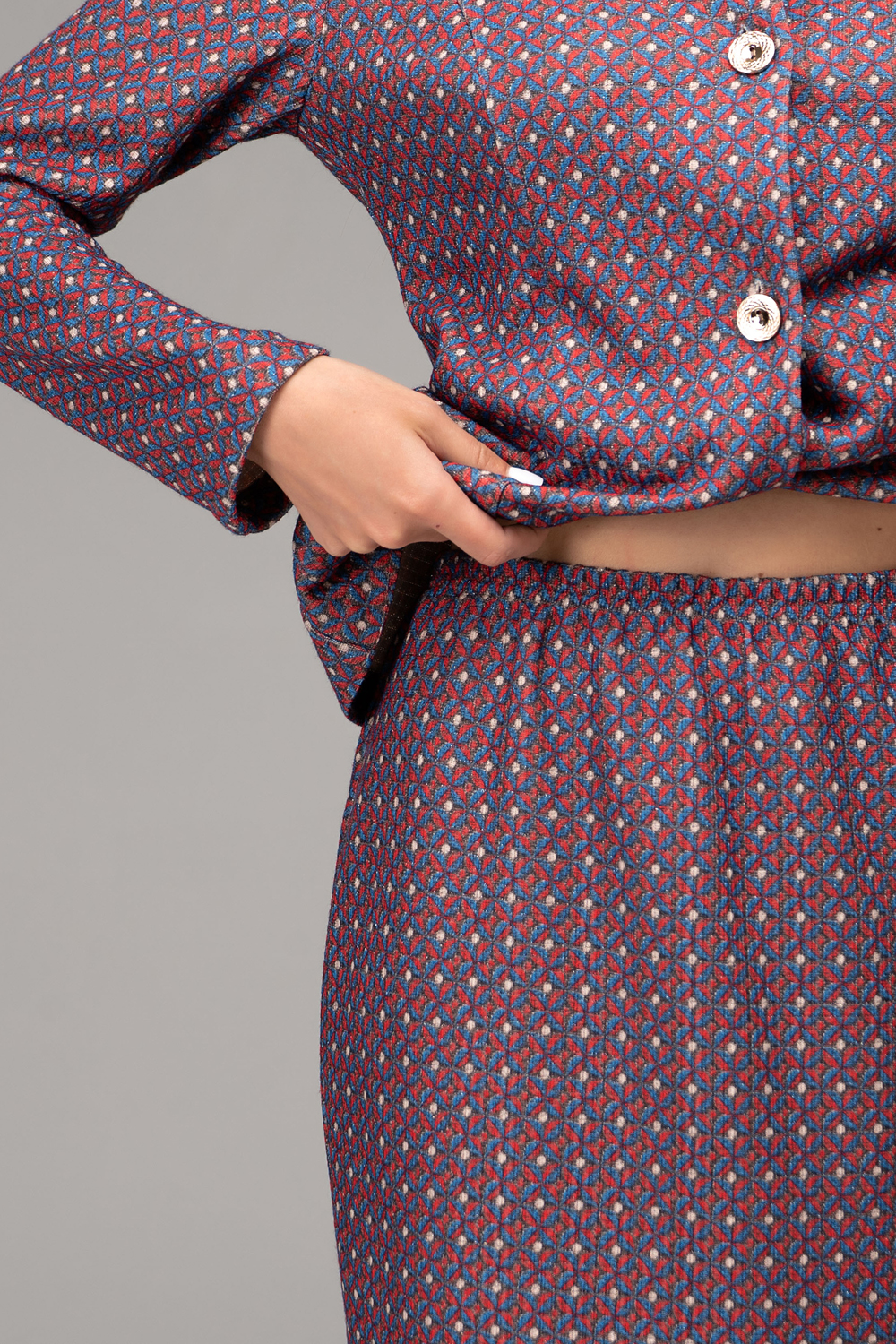Юбка модели карандаш в комплекте выполнена в стиле, который подчеркивает достоинства фигуры, обеспечивая комфортную посадку и свободу движений. Длина изделия идеально подходит как для офисной обстановки, так и для вечерних выходов.